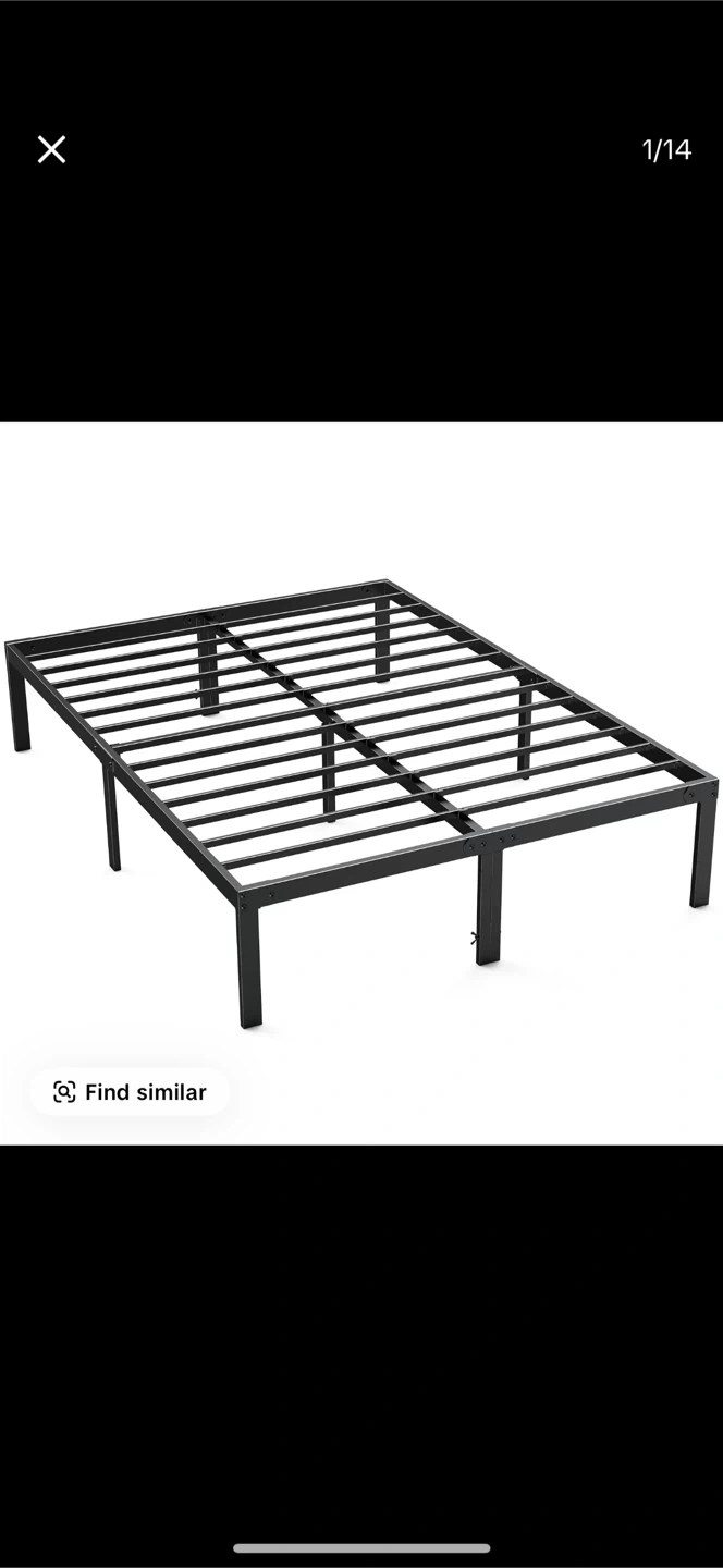 Selling a sturdy metal bed frame in black. It's in great condition and ready for a new home! This frame provides excellent support and is easy to assemble