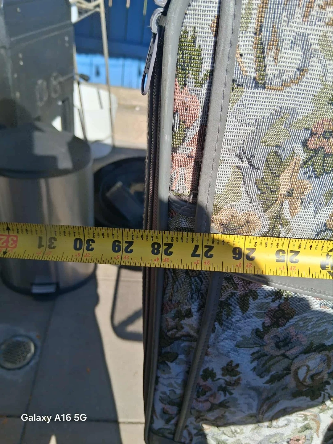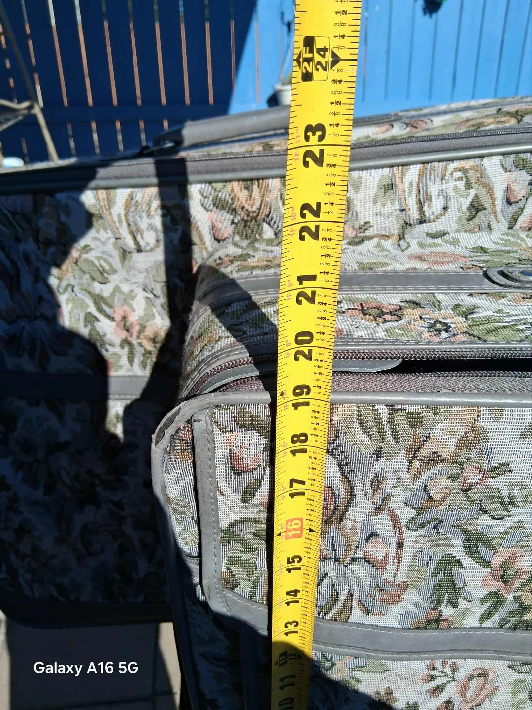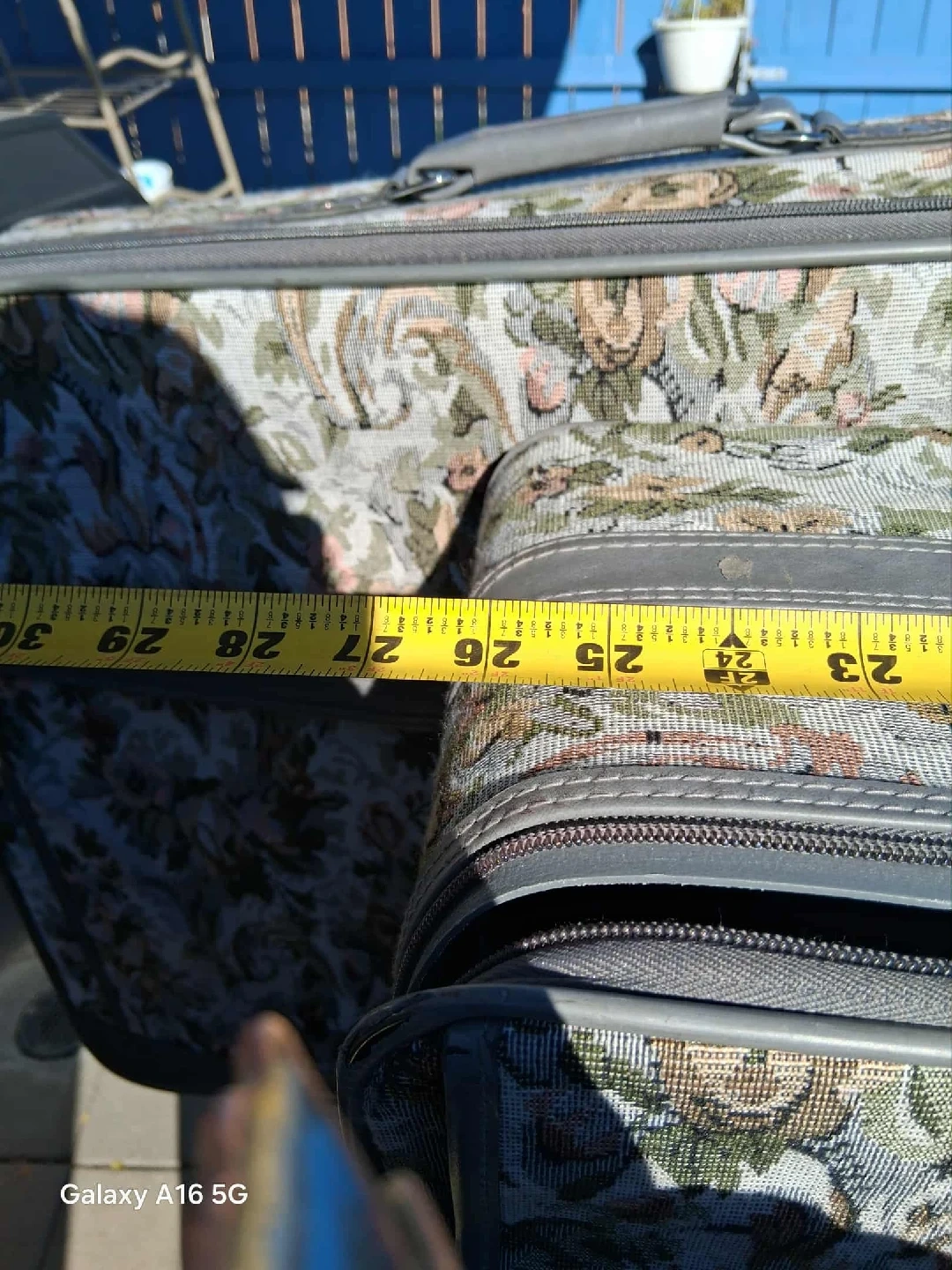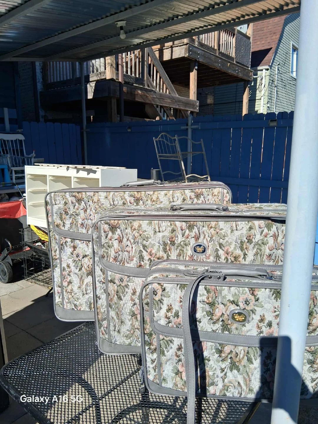 Selling a set of 3 floral patterned suitcases. The largest one is approximately 27 inches long, the medium one is around 21 inches, and the smallest one is about 16 inches. Great for all your travel needs!