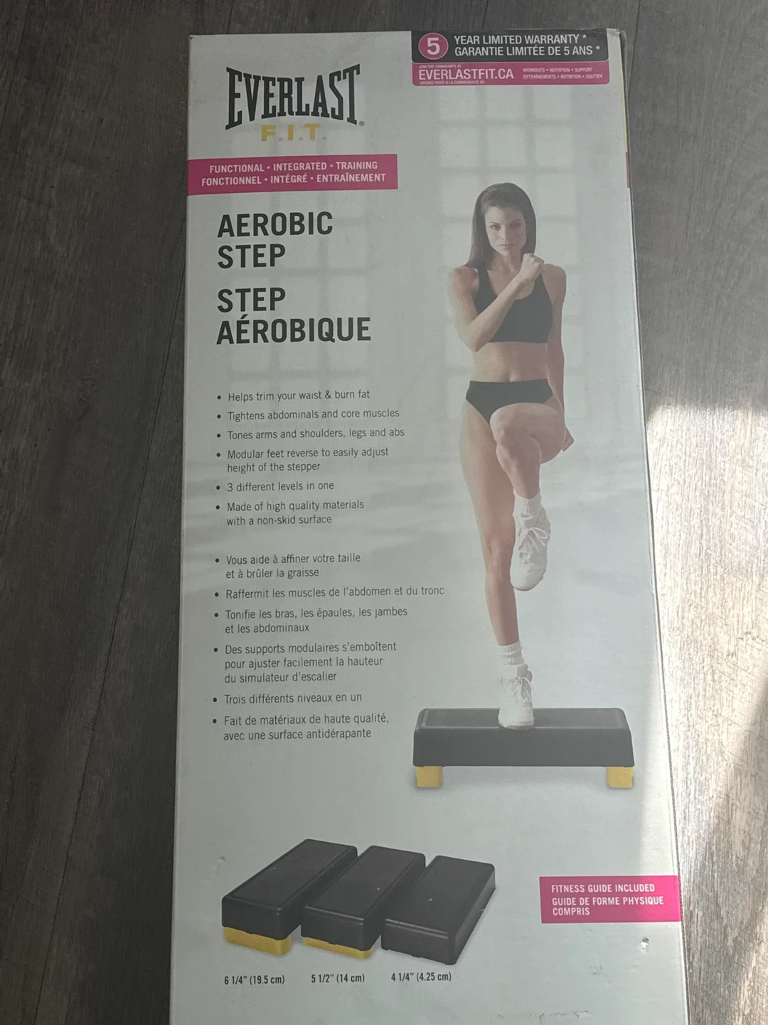 Selling an Everlast F.I.T. Aerobic Step! It helps trim your waist and burn fat, tightens abdominals and core muscles, and tones arms, shoulders, legs, and abs.