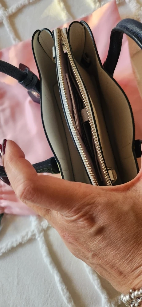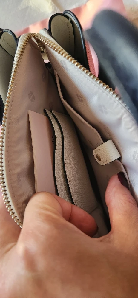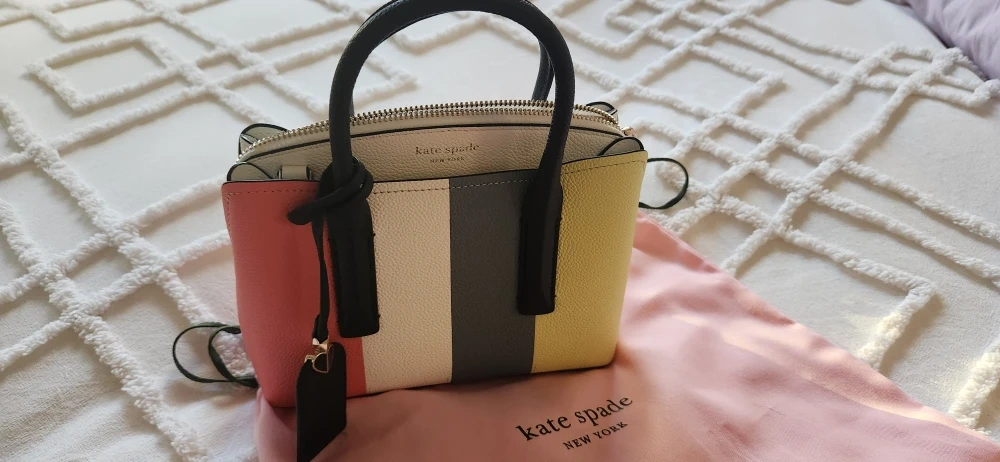This Kate Spade satchel is in great condition and ready for a new home! It features a fun colorblock design with a mix of pink, white, grey, and yellow leather panels. The bag has a structured shape with top handles and a zip-top closure. The interior has a few pockets to keep you organized. Comes with a dust bag for storage