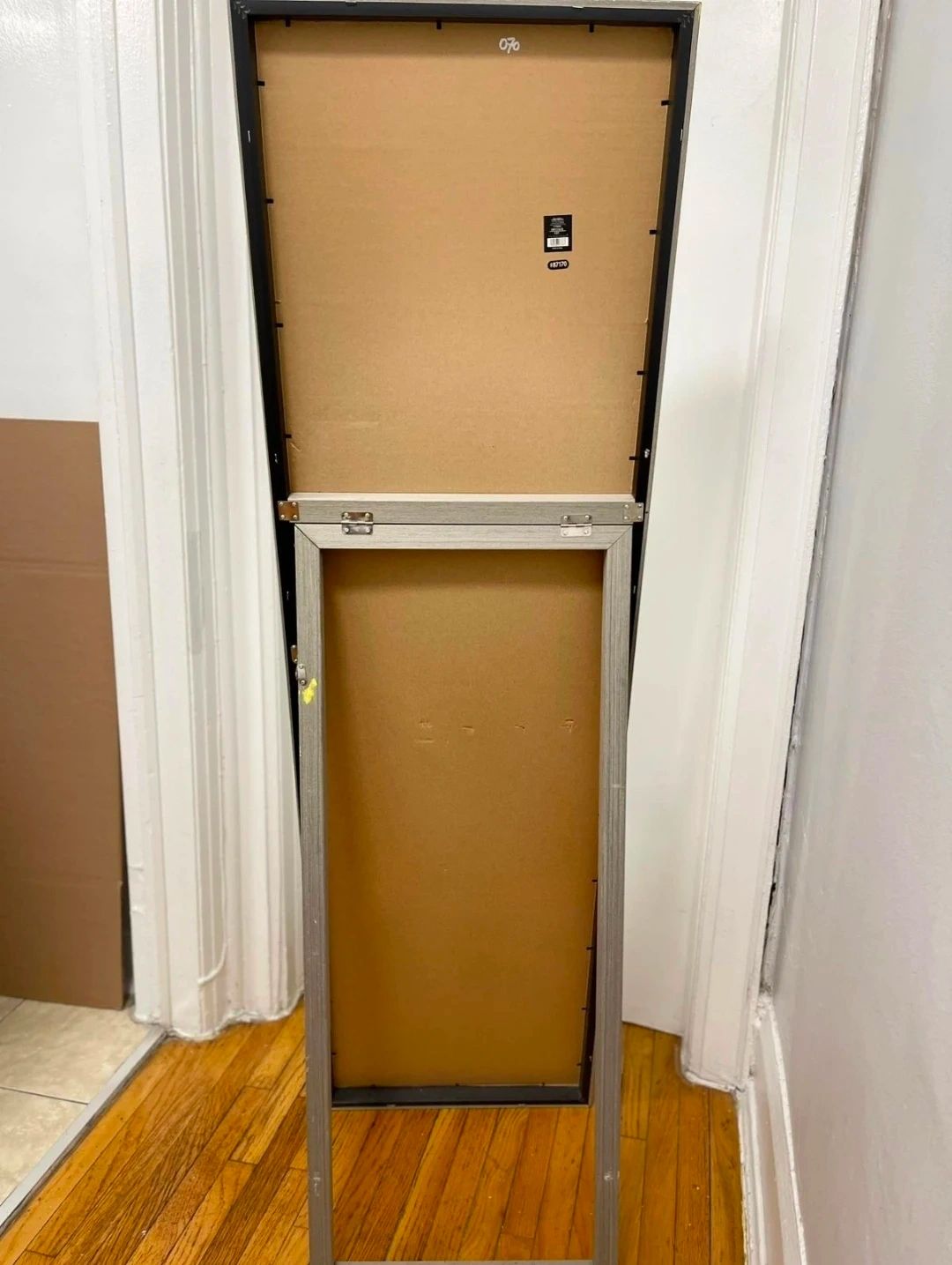 Selling a standing mirror with a frame. It's in great condition and ready to brighten up your space! Perfect for adding a touch of elegance to any room.