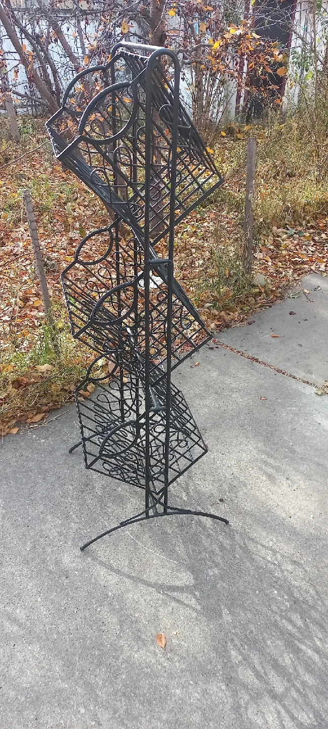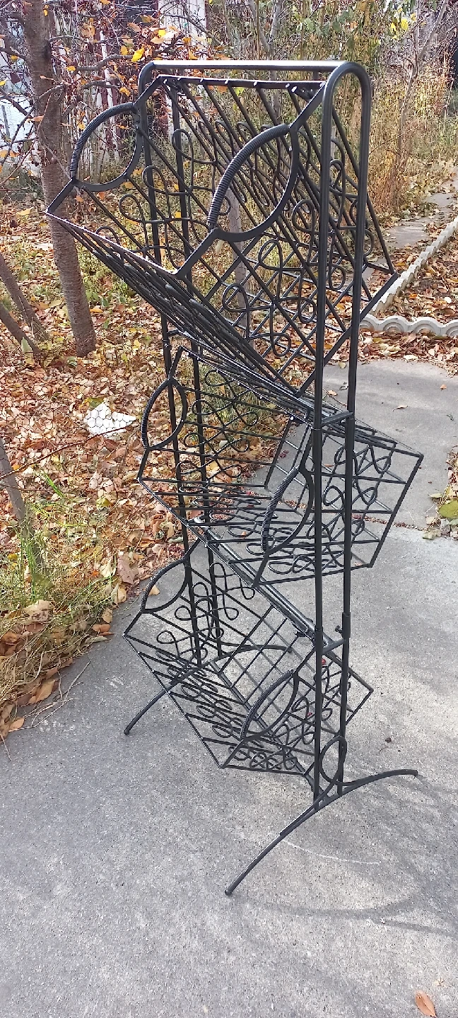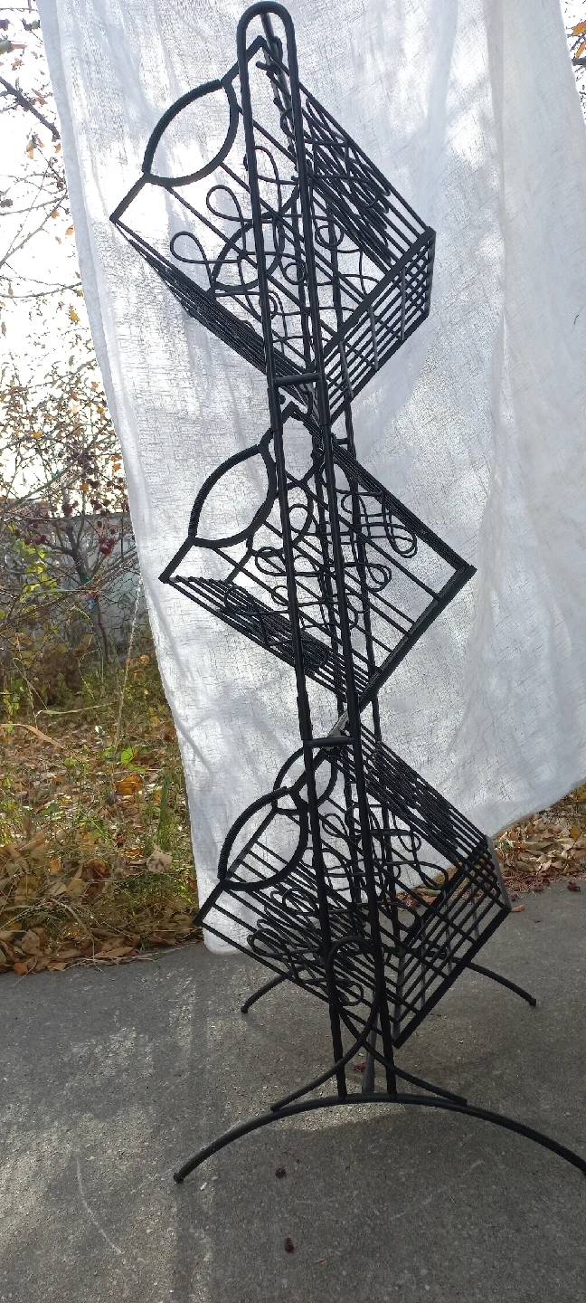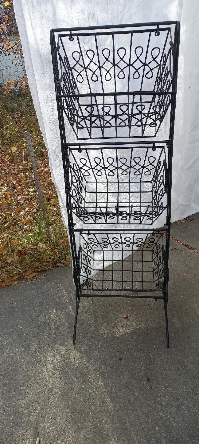 This is a metal 3-tier basket stand, perfect for organizing items or displaying plants. It's black and in good condition!