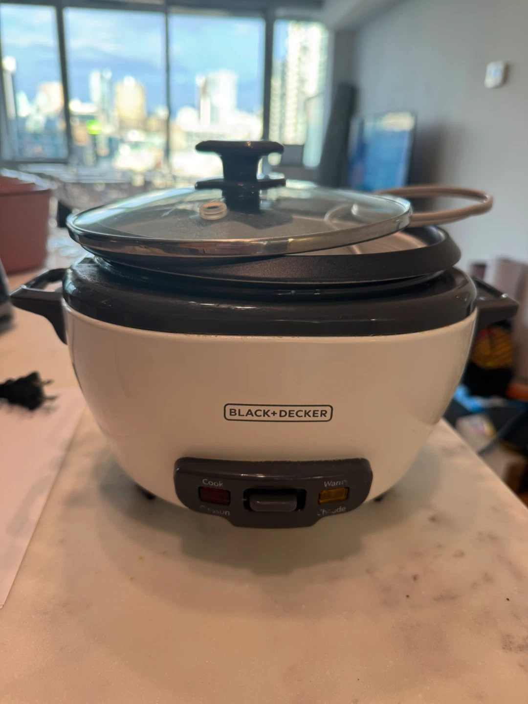 Selling a Black+Decker rice cooker in great condition! It has settings for both cooking and warming rice. Perfect for small kitchens.