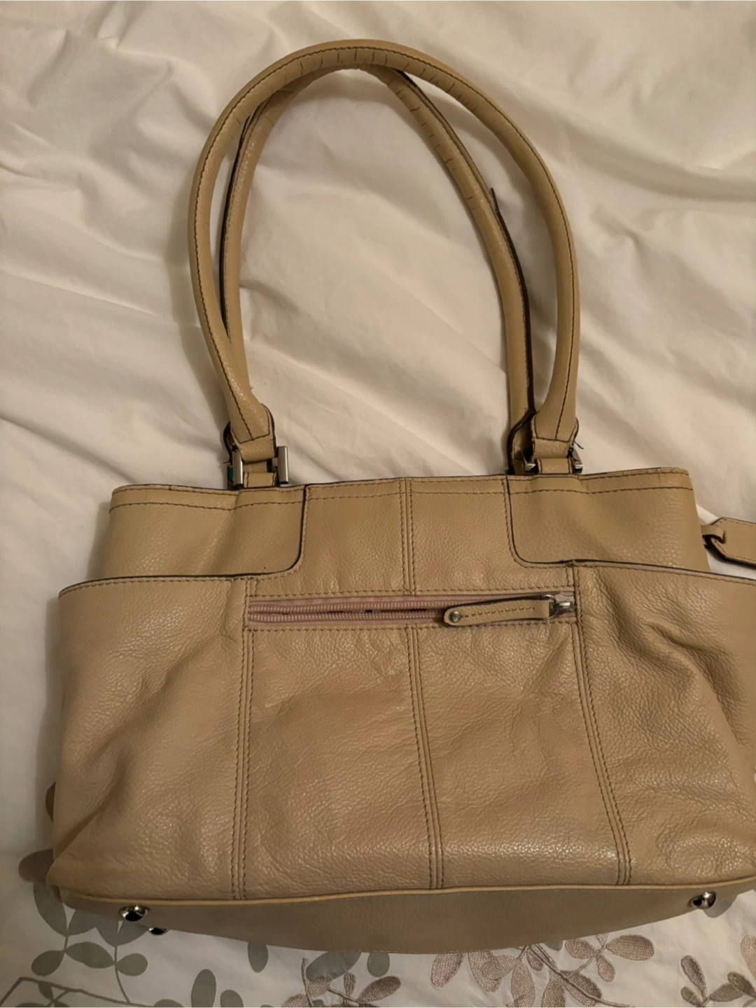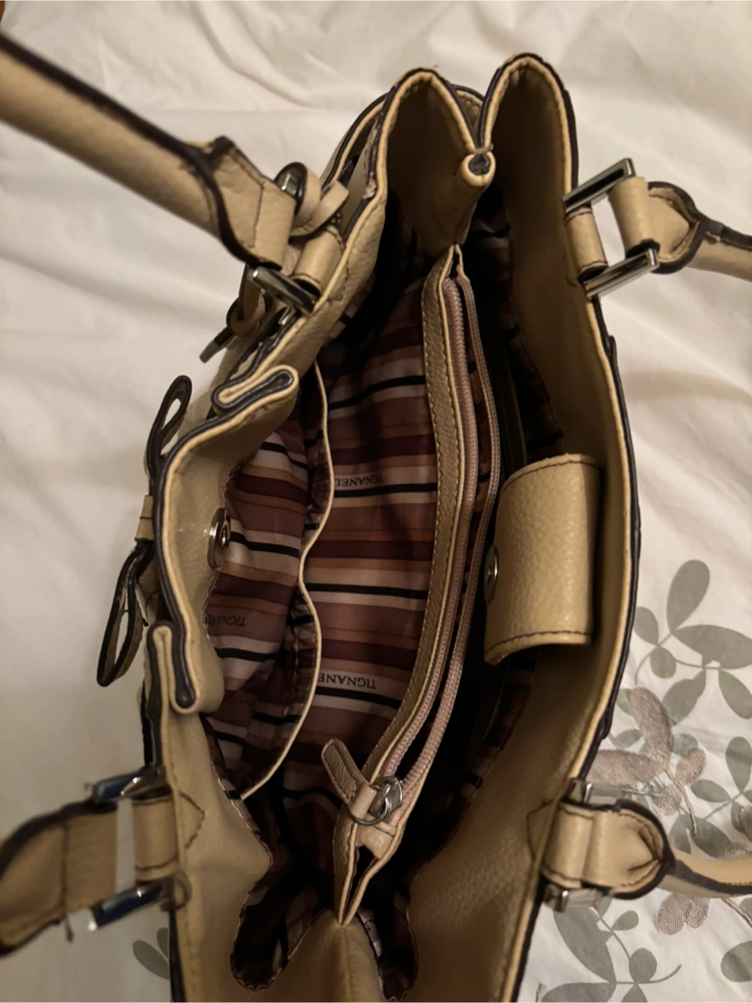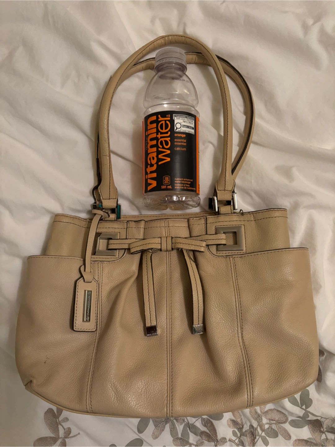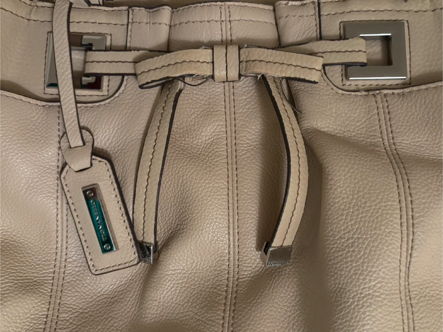 Selling a Tignanello leather handbag in a neutral tan colour & sweet bow detail.