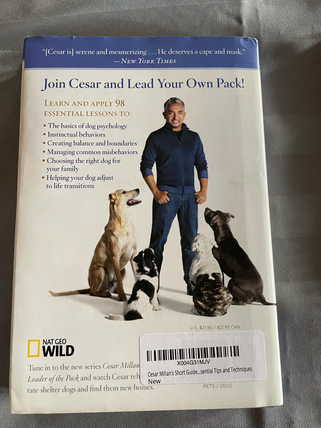 Selling a brand new Cesar Millan's Short Guide to a Happy Dog book. It has 98 essential tips and techniques to keep your dog happy and healthy, correct common misbehaviors, be a pack leader, and choose the right dog for you. Join Cesar and lead your own pack!