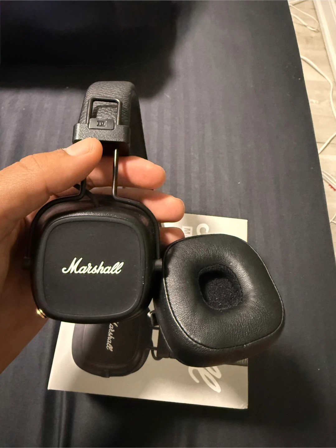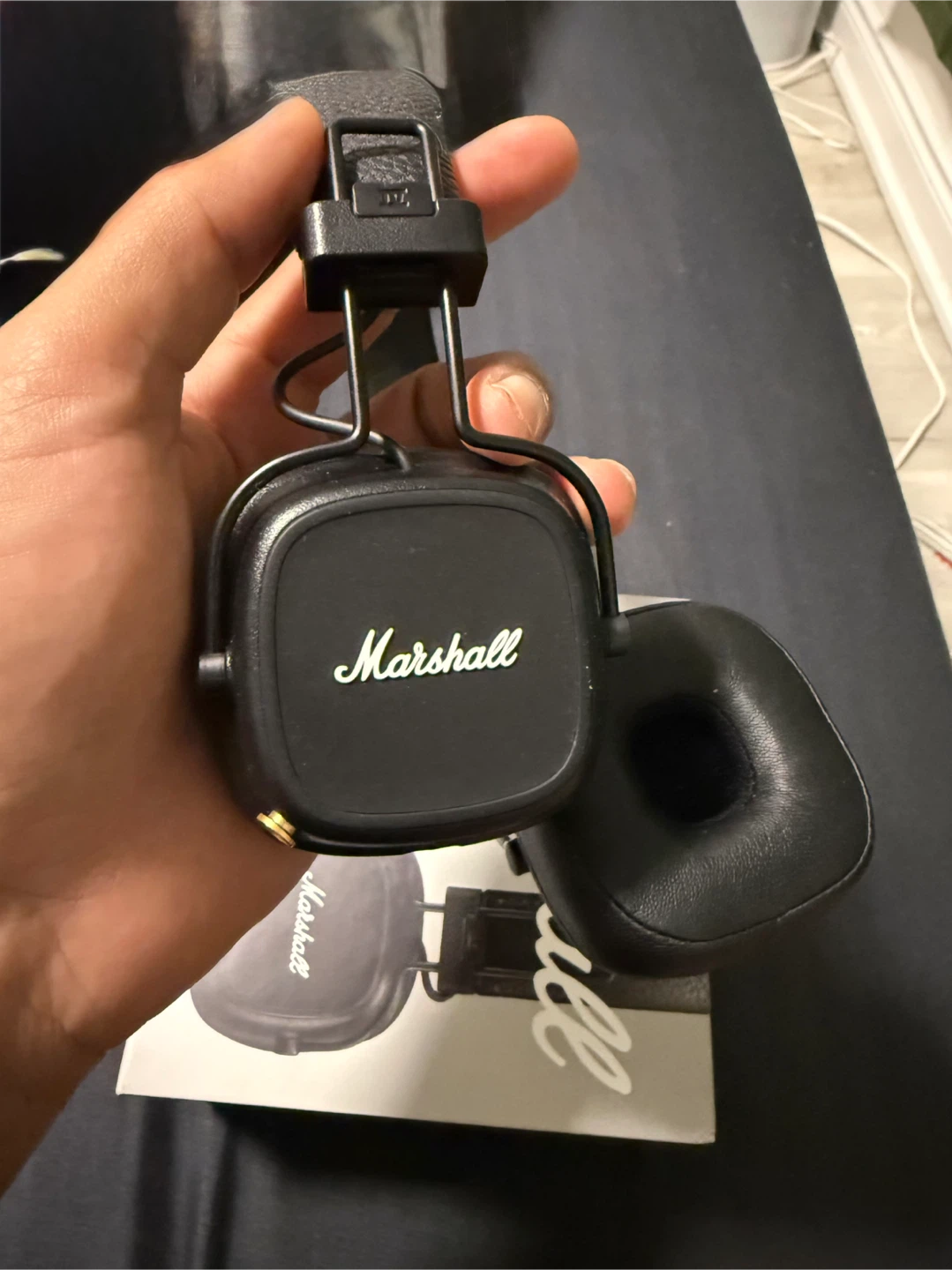 Selling my Marshall Major IV Bluetooth headphones. They're in excellent condition and come with the original box. These headphones provide 80+ hours of wireless playtime with integrated wireless charging. Perfect for anyone who loves great sound and long battery life!