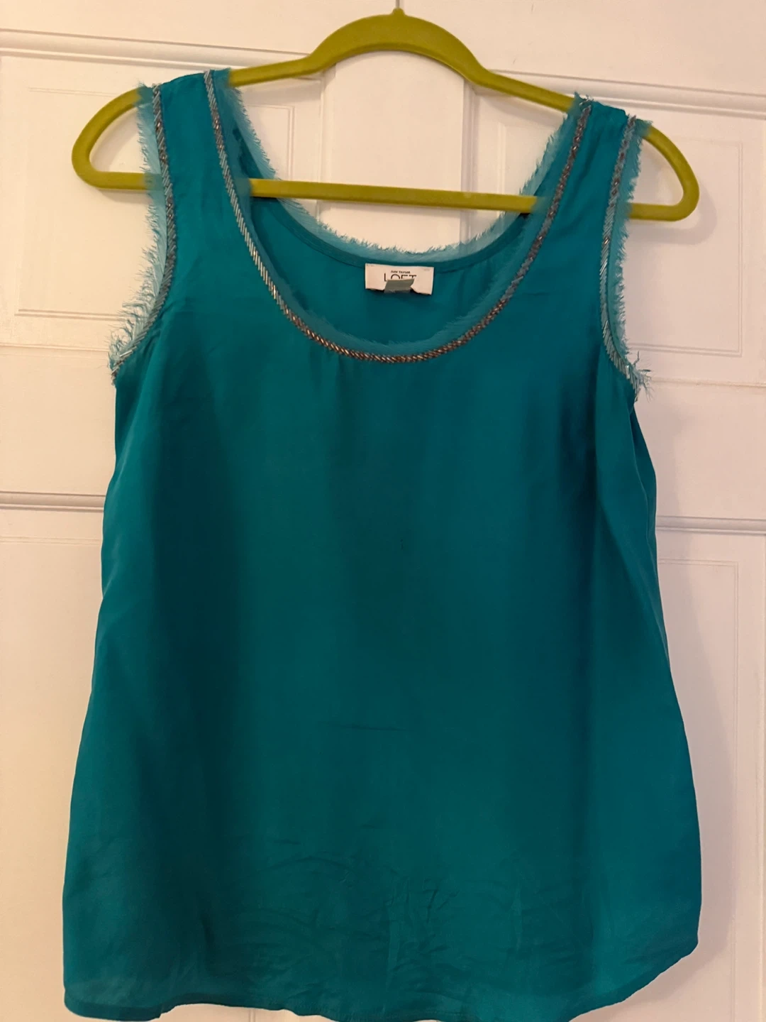 334Selling a beautiful teal LOFT Ann Taylor tank top made from 100% silk! It's a size XS and has some lovely detailing around the neckline. Perfect for dressing up or down
