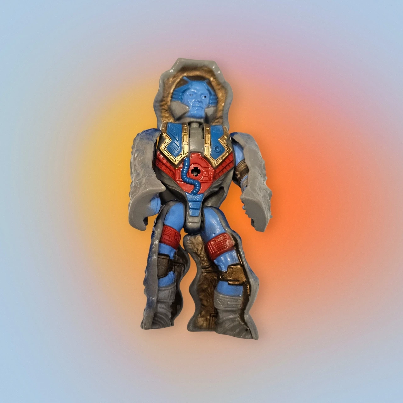 From the vintage Masters of the Universe line comes Stonedar, the heroic leader of the Rock People! Transforming from rock to warrior, he’s a true classic from Eternia’s cosmic defenders — and the perfect companion to Rokkon.