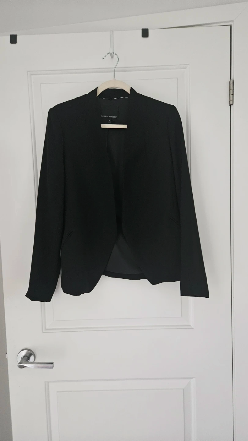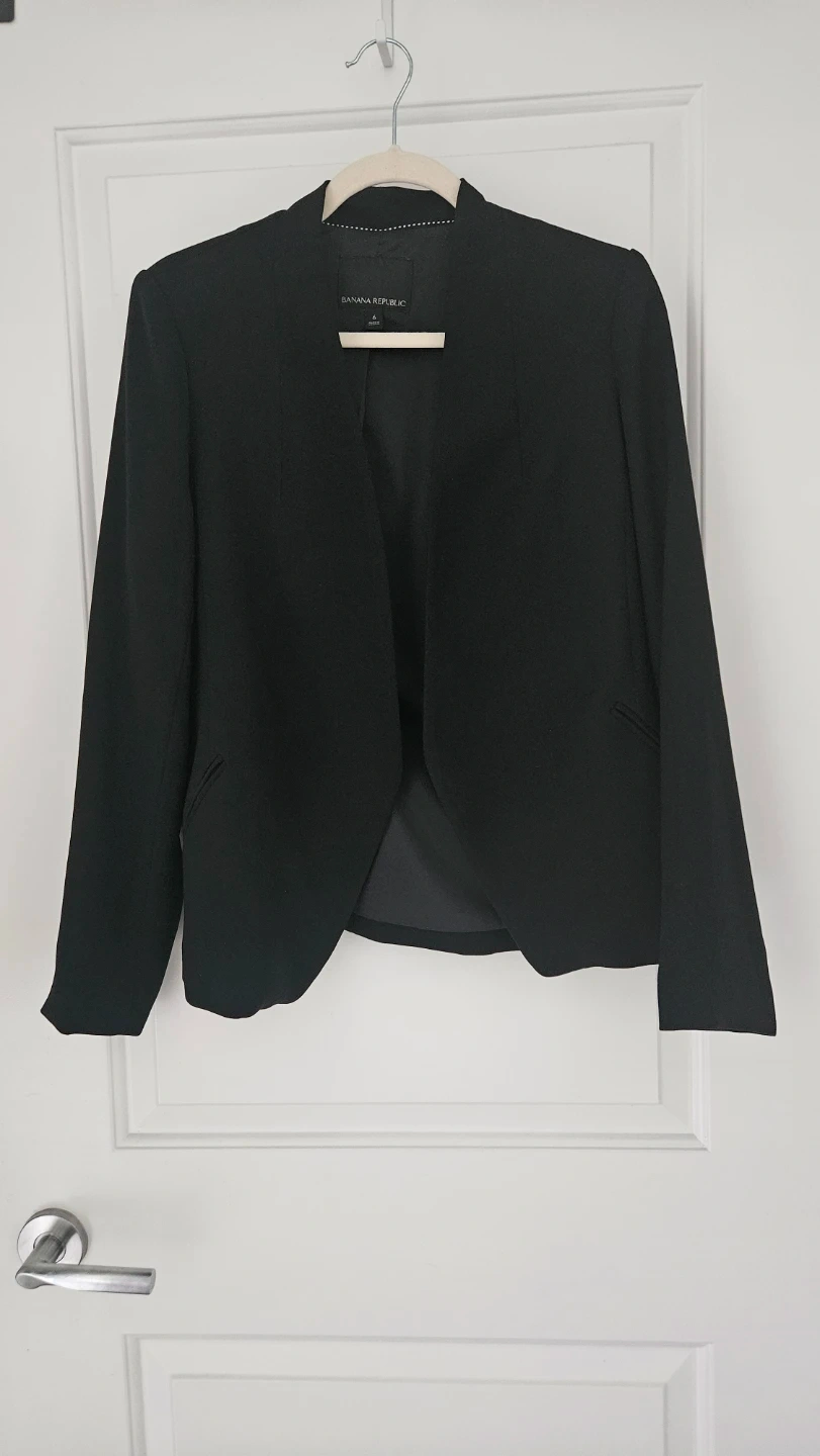 Selling a Banana Republic black blazer in size 6. It's in fantastic condition and ready for a new home! Perfect for business or casual wear, this blazer is a versatile addition to any wardrobe.