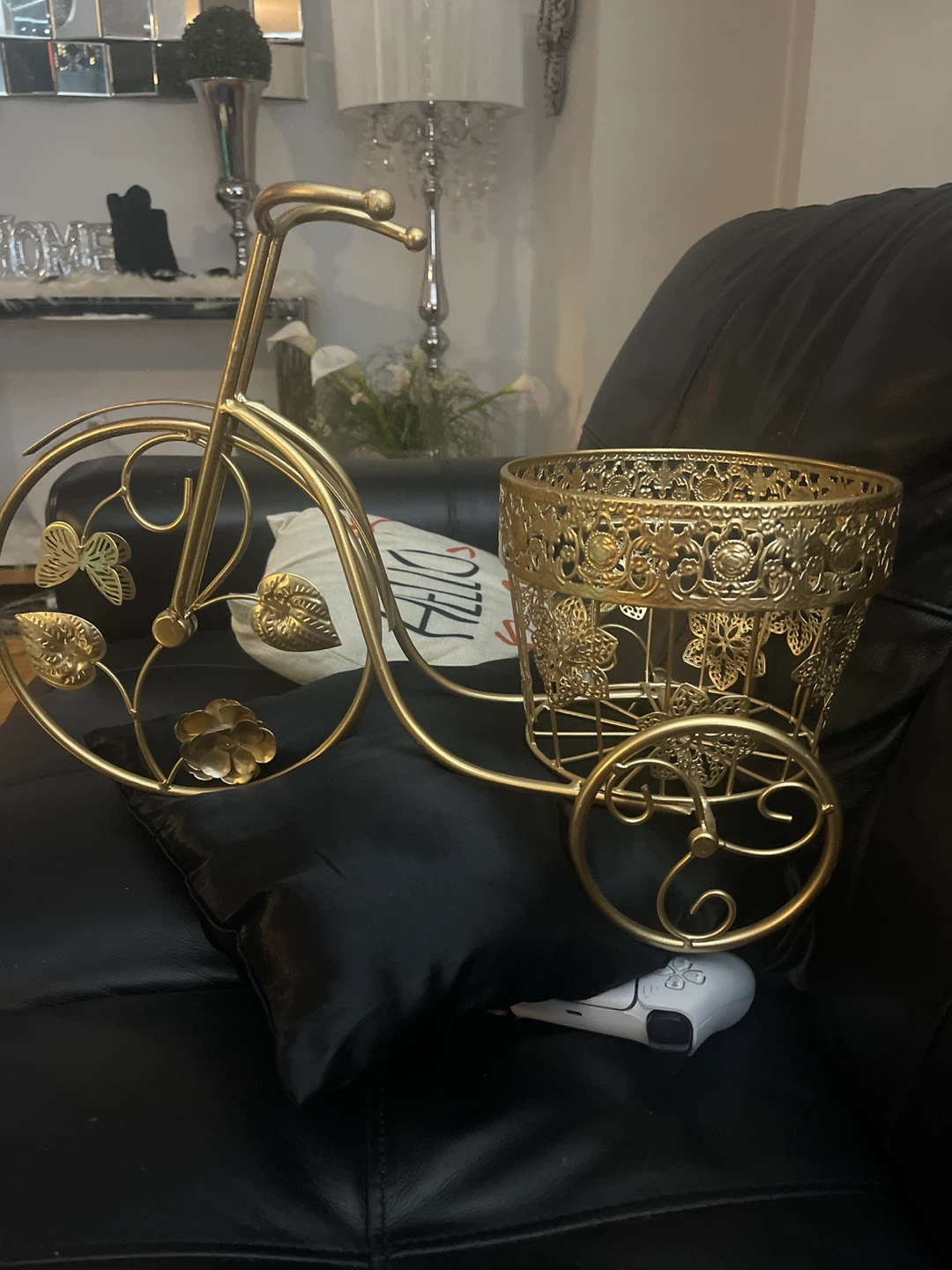 Add a touch of whimsy to your home with this charming gold metal decorative bicycle planter! It's perfect for displaying your favourite plants or flowers, or even using it as a unique storage solution. The intricate details and elegant design make it a lovely addition to any room