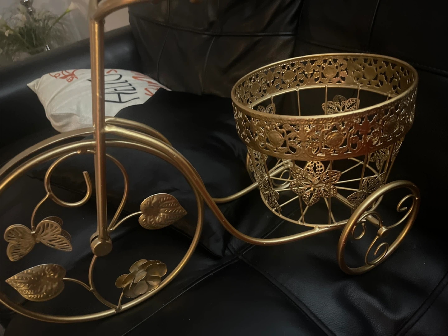 Add a touch of whimsy to your home with this charming gold metal decorative bicycle planter! It's perfect for displaying your favourite plants or flowers, or even using it as a unique storage solution. The intricate details and elegant design make it a lovely addition to any room
