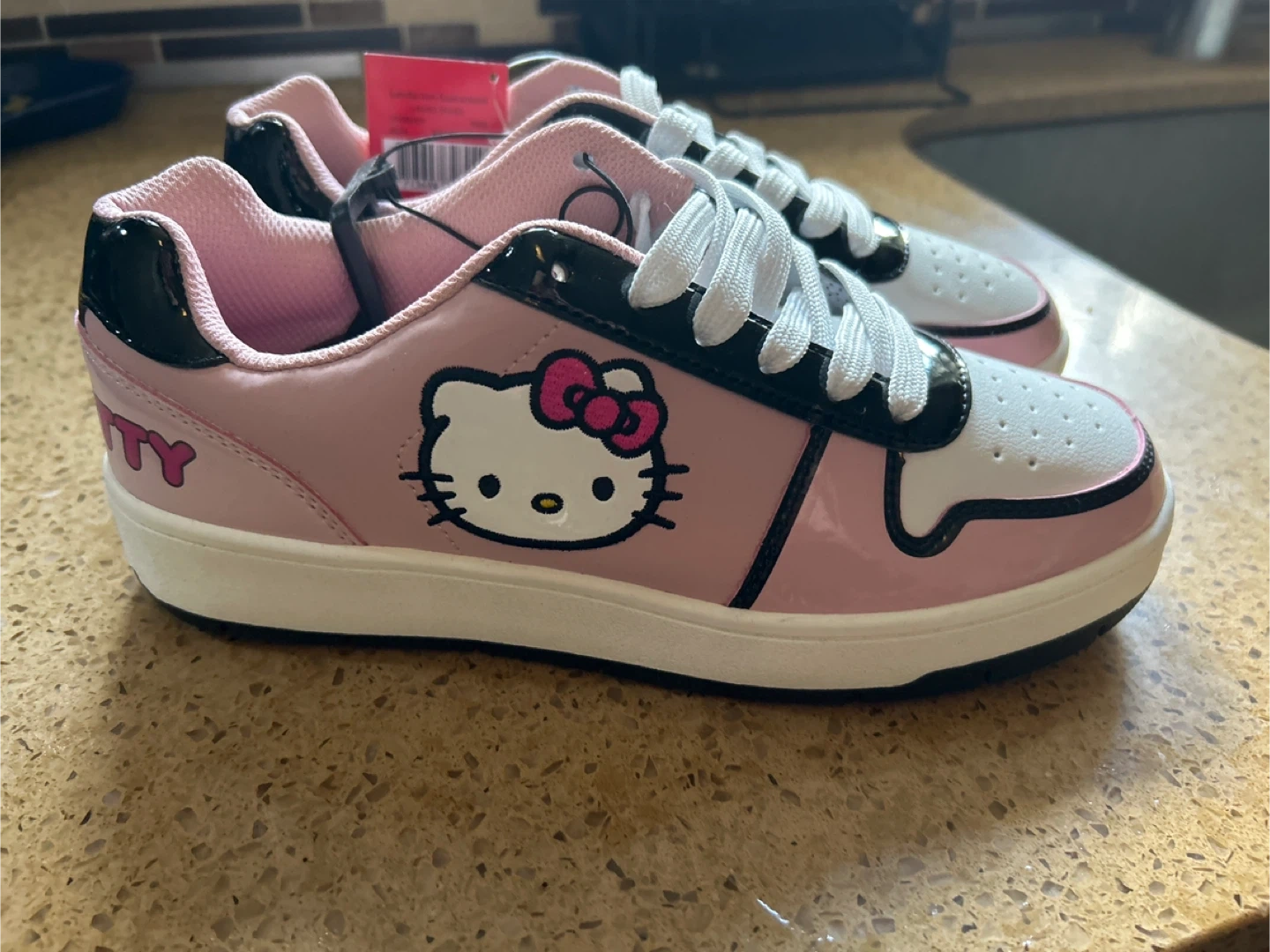 Cute Hello Kitty sneakers in pink and white! These are in great condition and feature Hello Kitty's adorable face on the side. Perfect for any Hello Kitty fan!