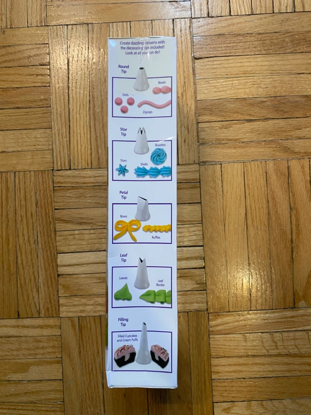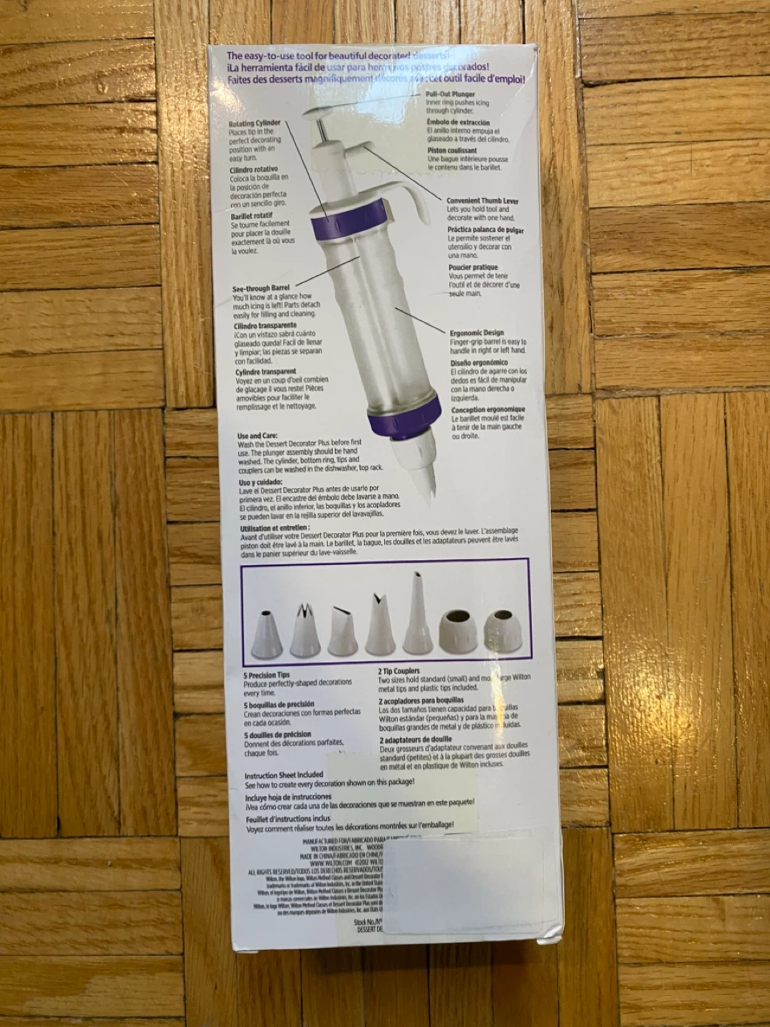 Get creative with this Wilton Dessert Decorator Plus! It's the easy-to-use tool for beautiful decorated desserts. Includes 5 decorating tips and an instruction sheet to help you get started on your baking journey. The box is included!