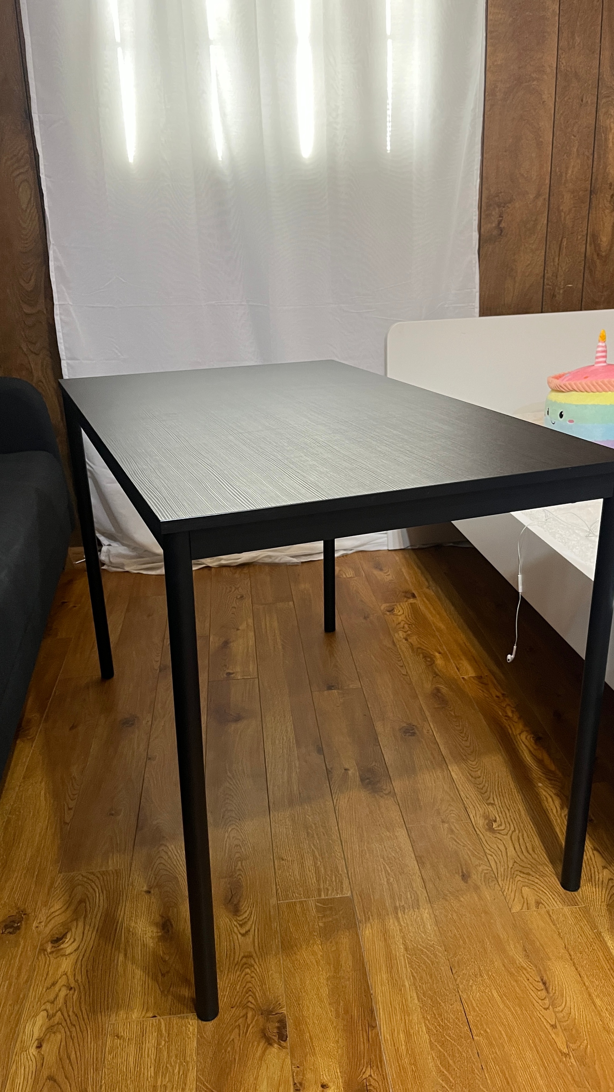 Selling an IKEA SANDSBERG dining/work table in black. It’s in great overall condition — sturdy, minimalist, and fits perfectly in small spaces like apartments, kitchens, or home offices.