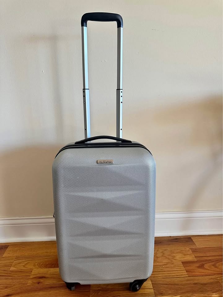 Pickup in Hyde Park. Selling a silver American Tourister suitcase! It's in great condition and ready for your next adventure. This suitcase is perfect for carry-on or short trips.