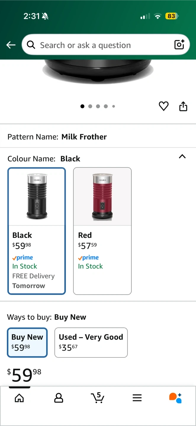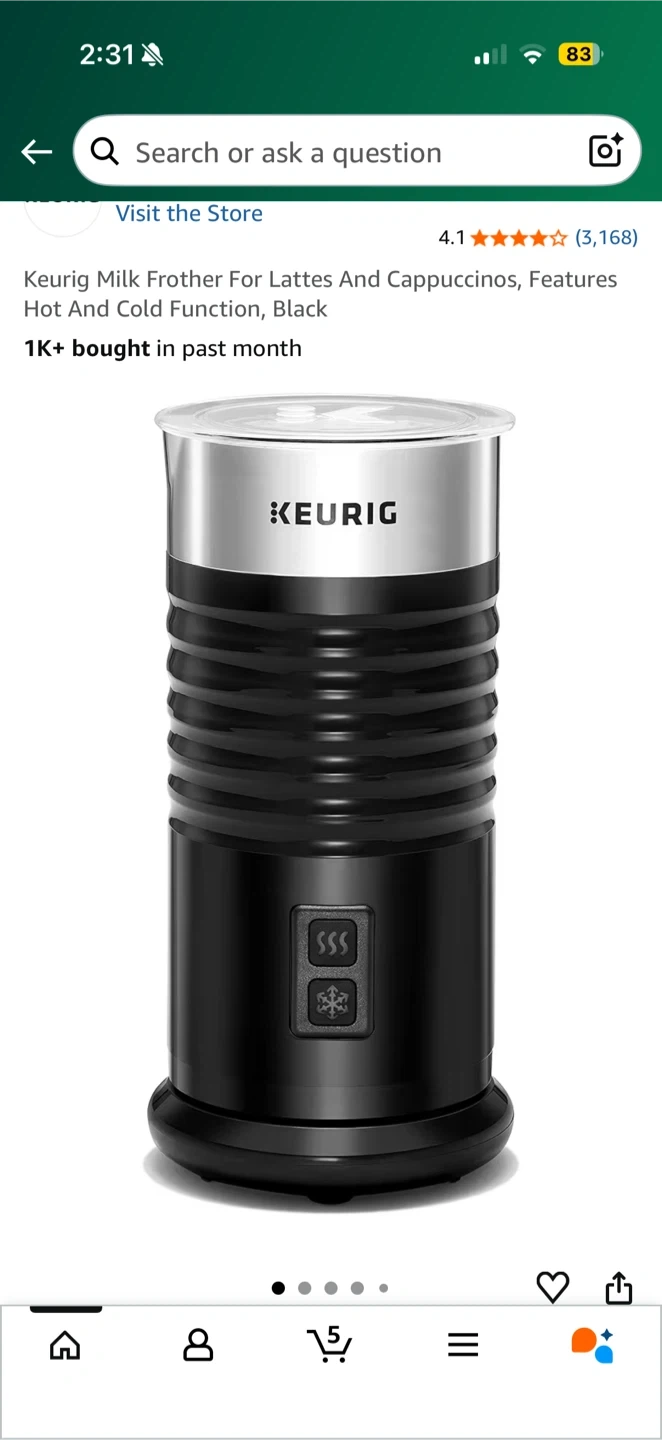 Selling a Keurig milk frother in black! It's perfect for making lattes and cappuccinos with both hot and cold functions. It was originally bought for $59.98. Selling it because i got an espresso machine with a frother.
