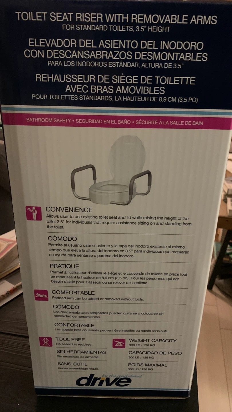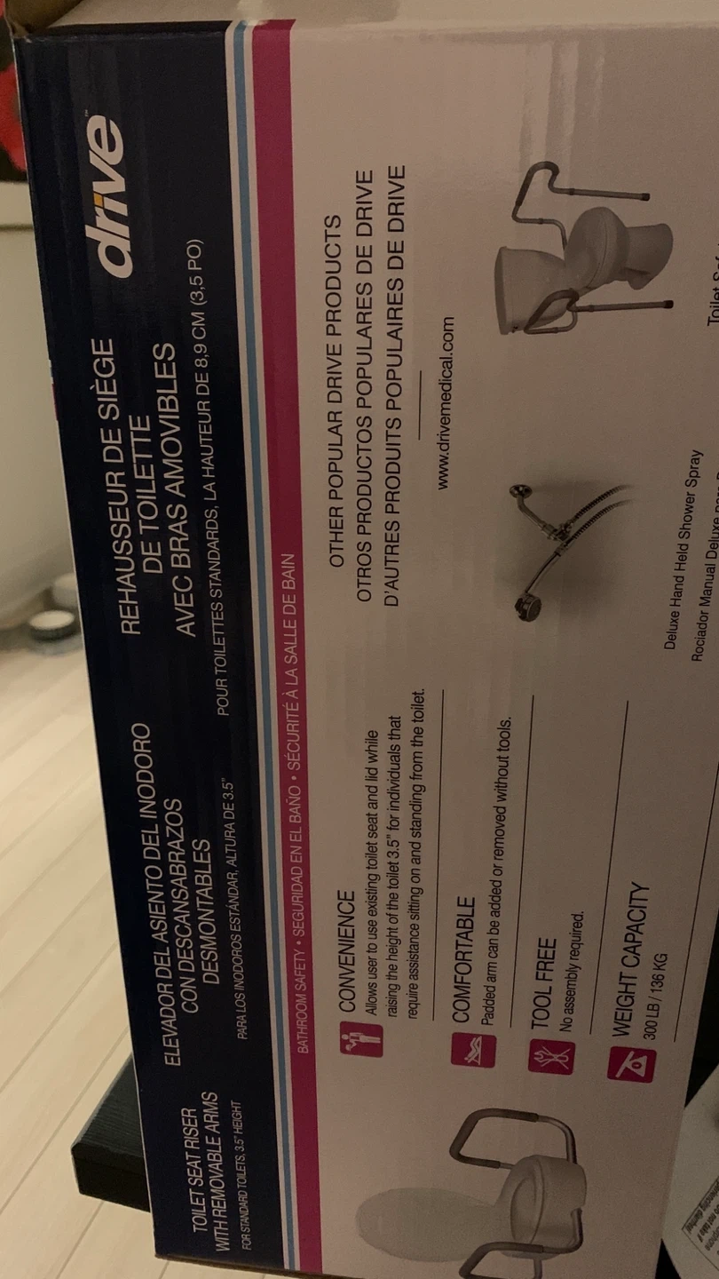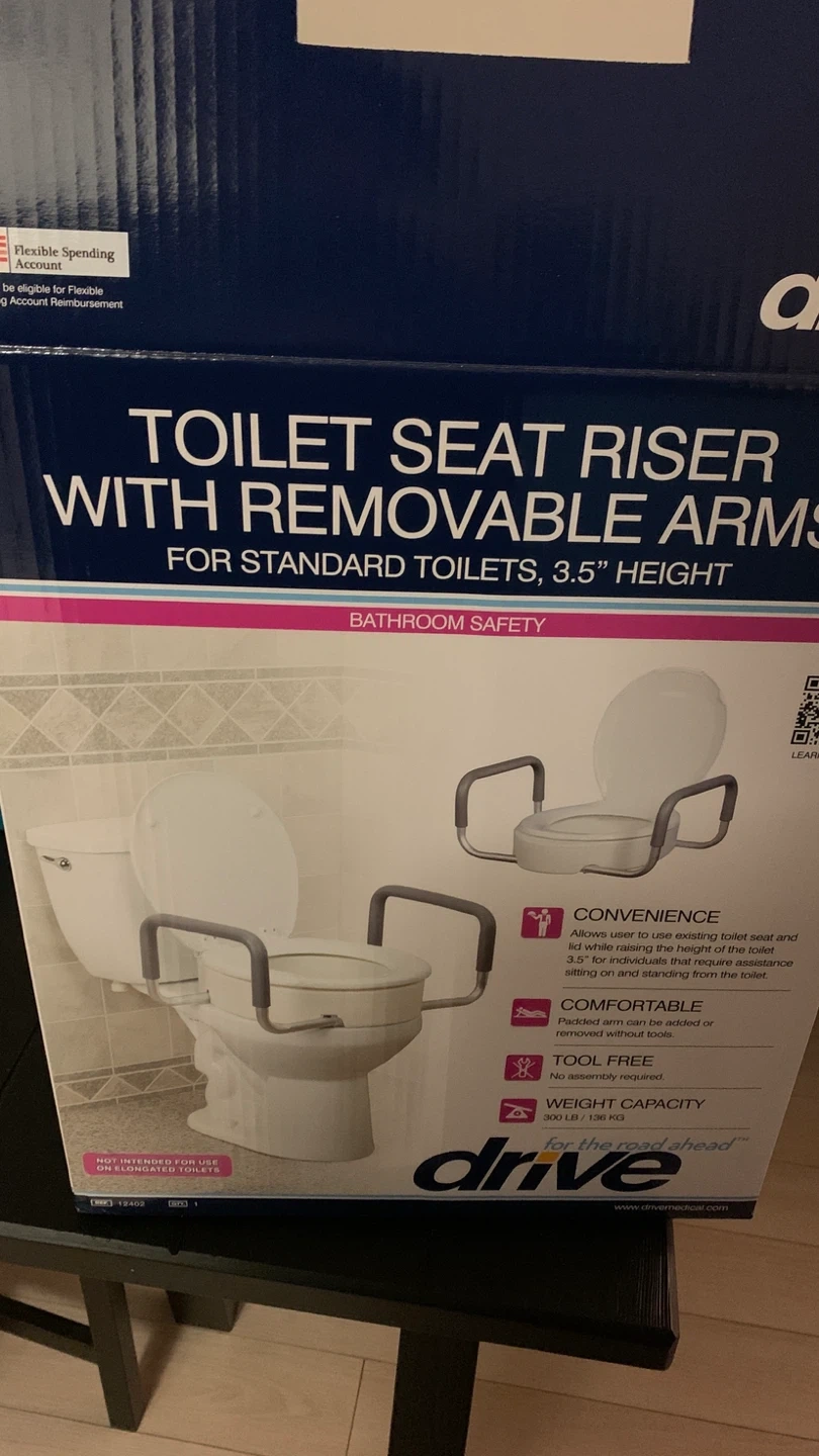 Selling a brand new toilet seat riser with removable arms, never used. It turns out it’s not compatible with our toilet but we didn’t realize it. This will fit any standard toilet. Was purchased a few days ago.