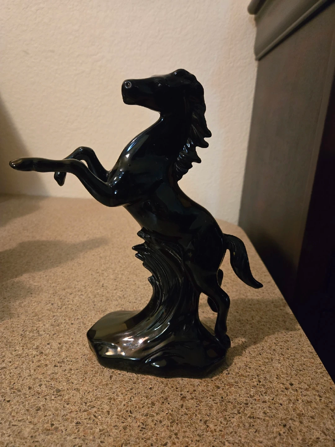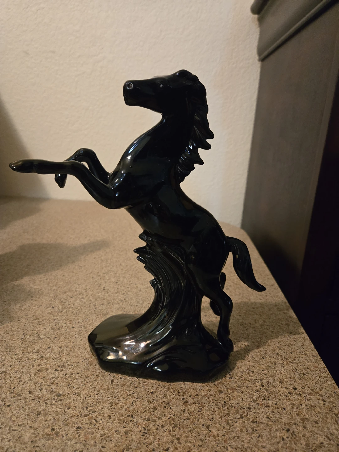 Here's a sleek black horse figurine that would look great on a shelf or desk! It's in excellent condition and ready for a new home