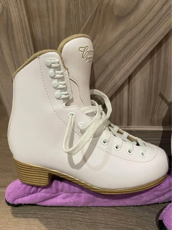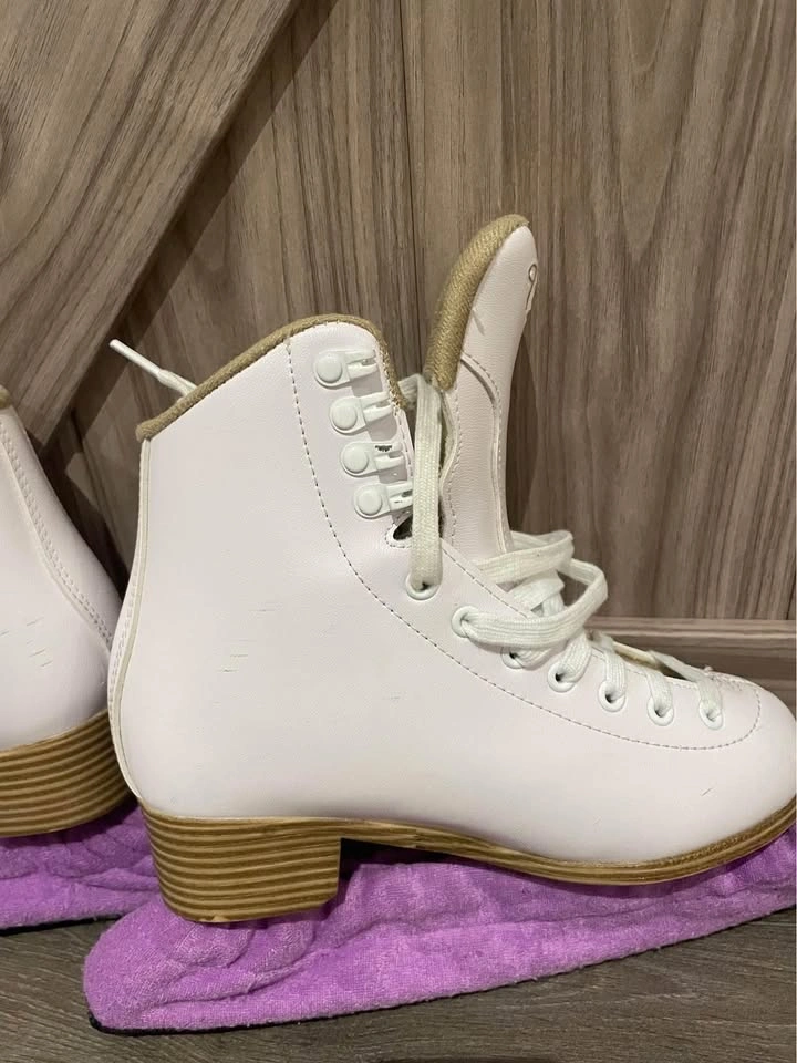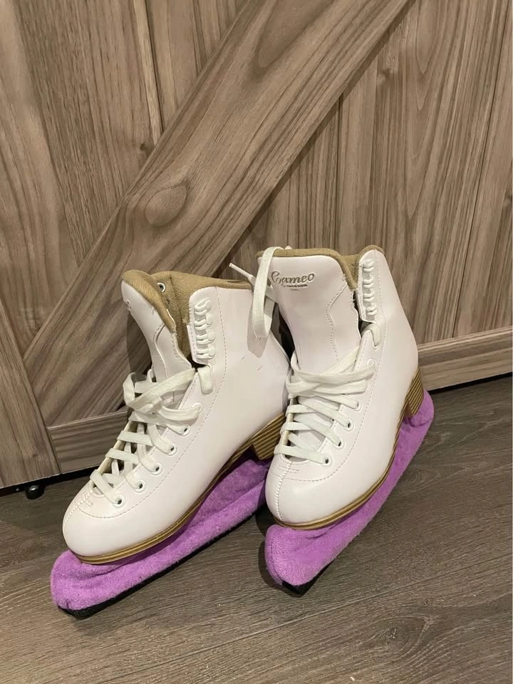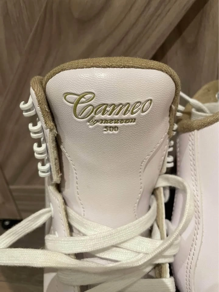Jackson Cameo 500 Figure skates - Size 4. Excellent Like New Condition. Used maybe 10-15 times before my daughter outgrew them. Some scuffs on the outside as pictured.