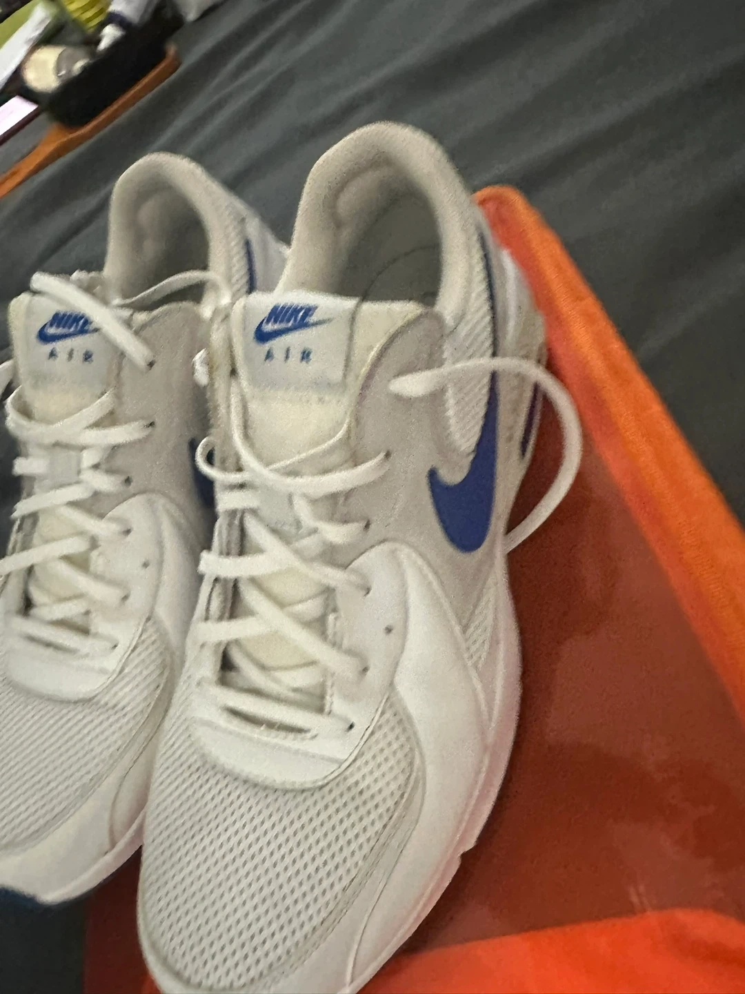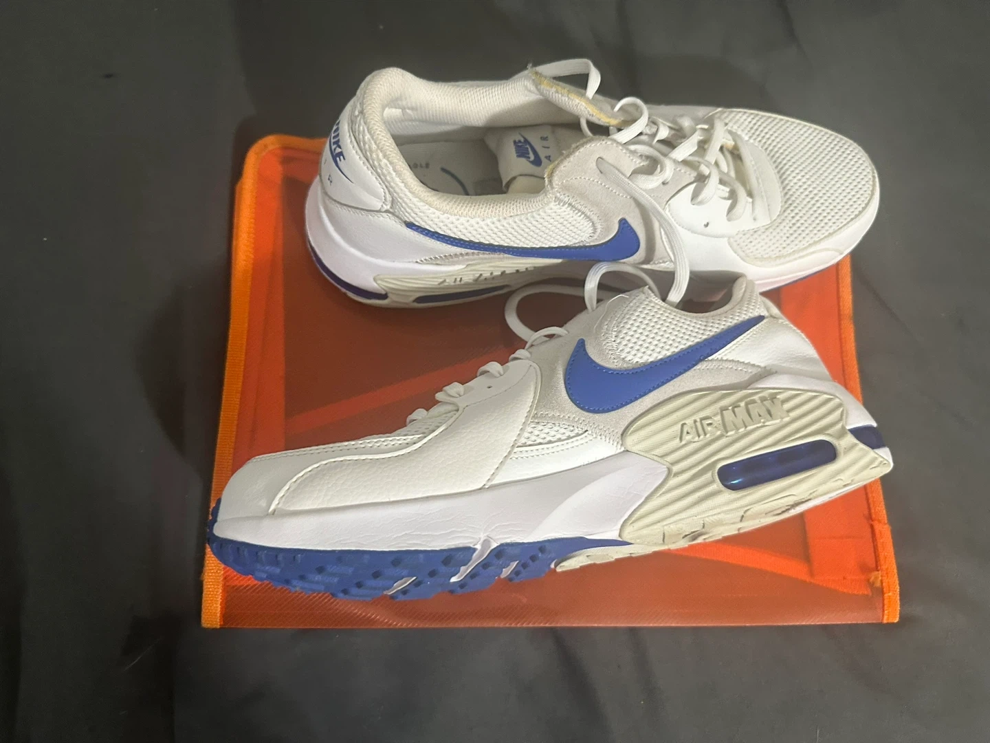 60Selling a pair of Nike Air Max sneakers in white with blue accents. They are in good condition and ready for a new home!