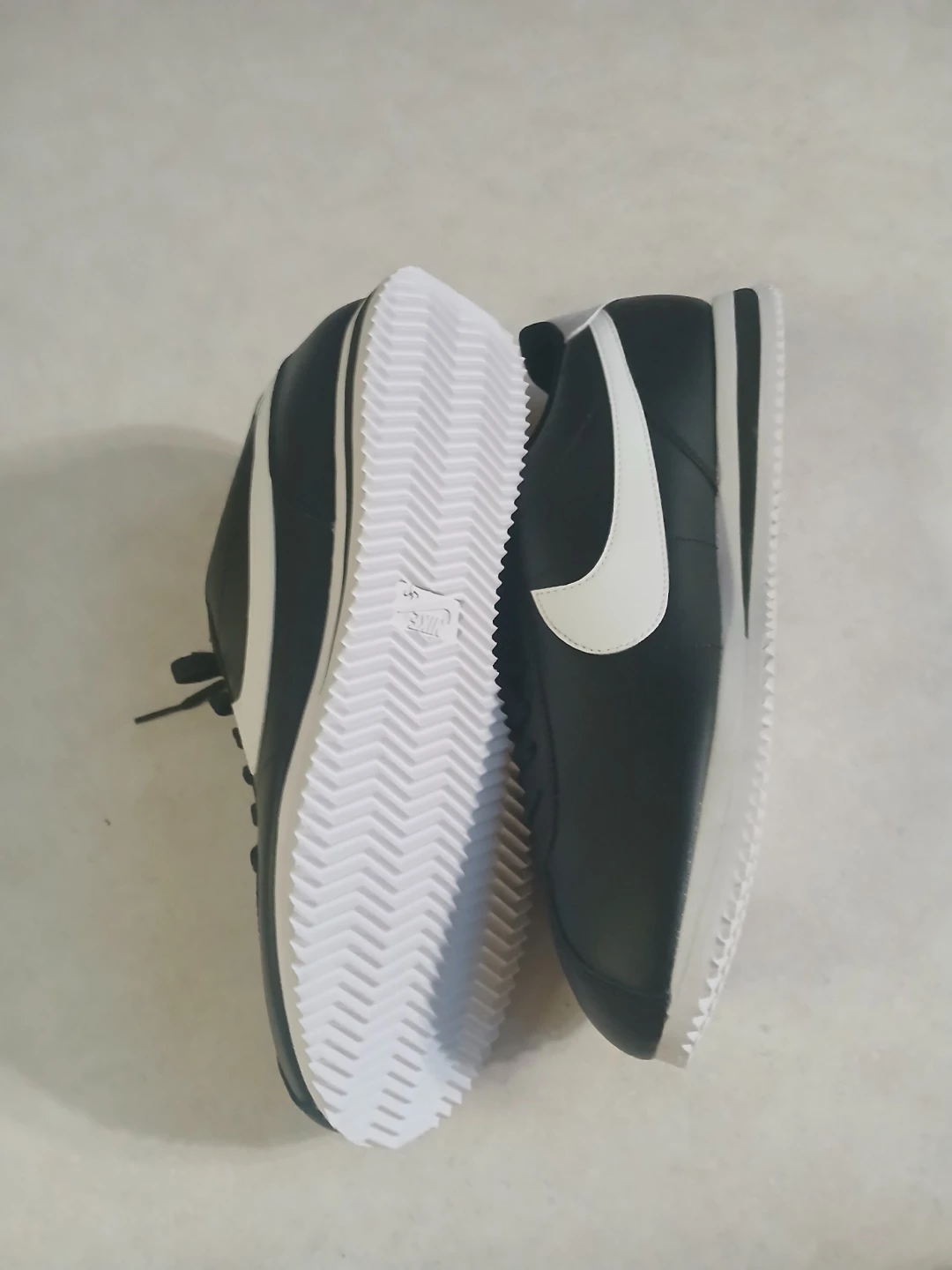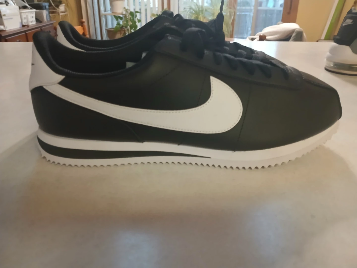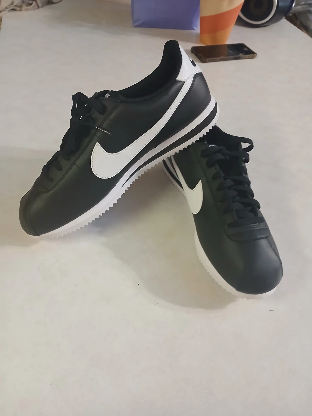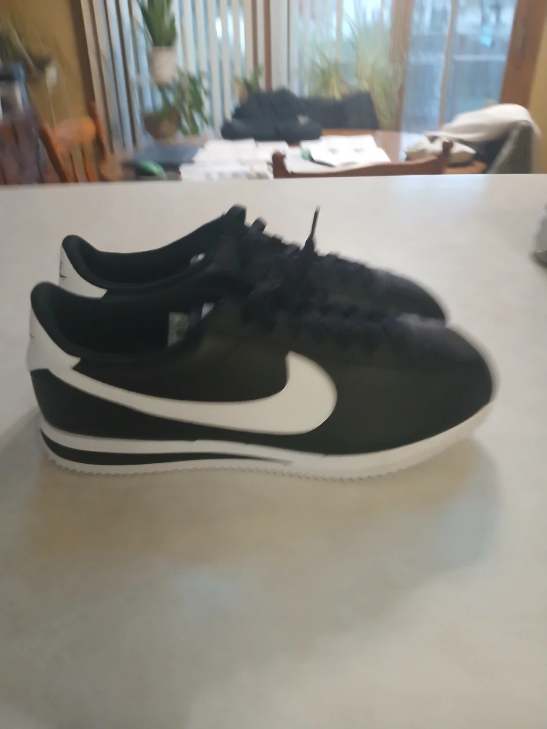 Selling a pair of classic Nike Cortez sneakers in black and white. These are in great condition and ready for a new home! They feature the iconic Nike swoosh and a comfortable design. Perfect for everyday wear!
