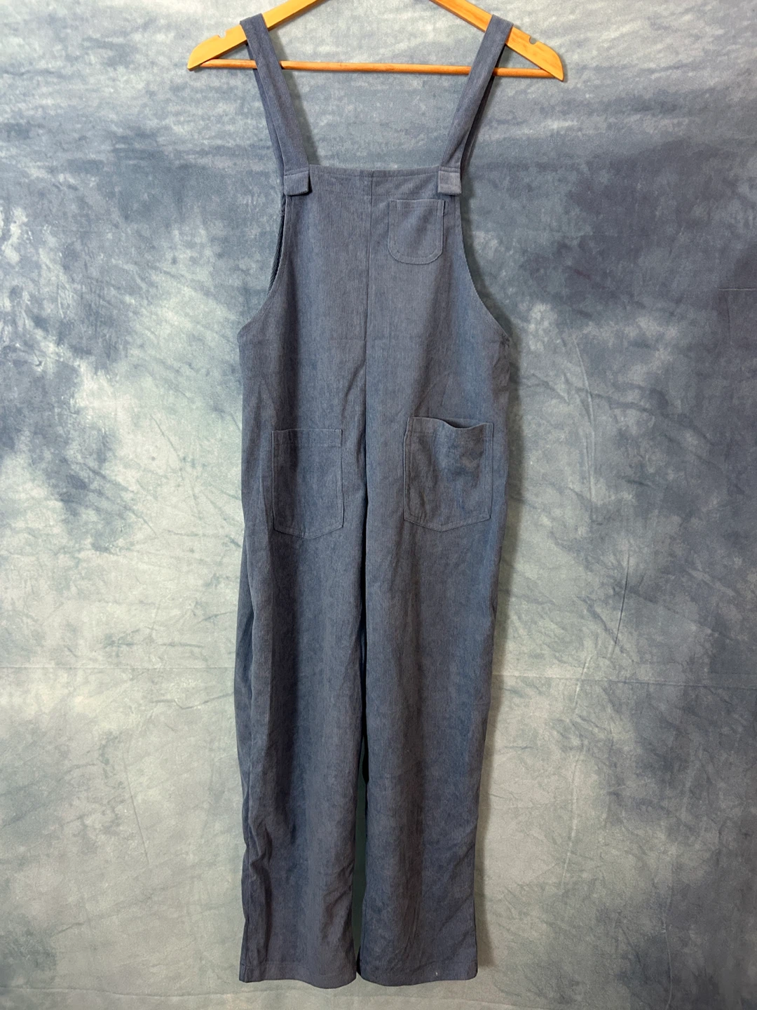 These blue corduroy overalls from SHEIN are in great condition! They're a size XS, perfect for a comfy and casual look. The corduroy material adds a nice texture, and they're easy to style. They're super cute and ready for a new home!