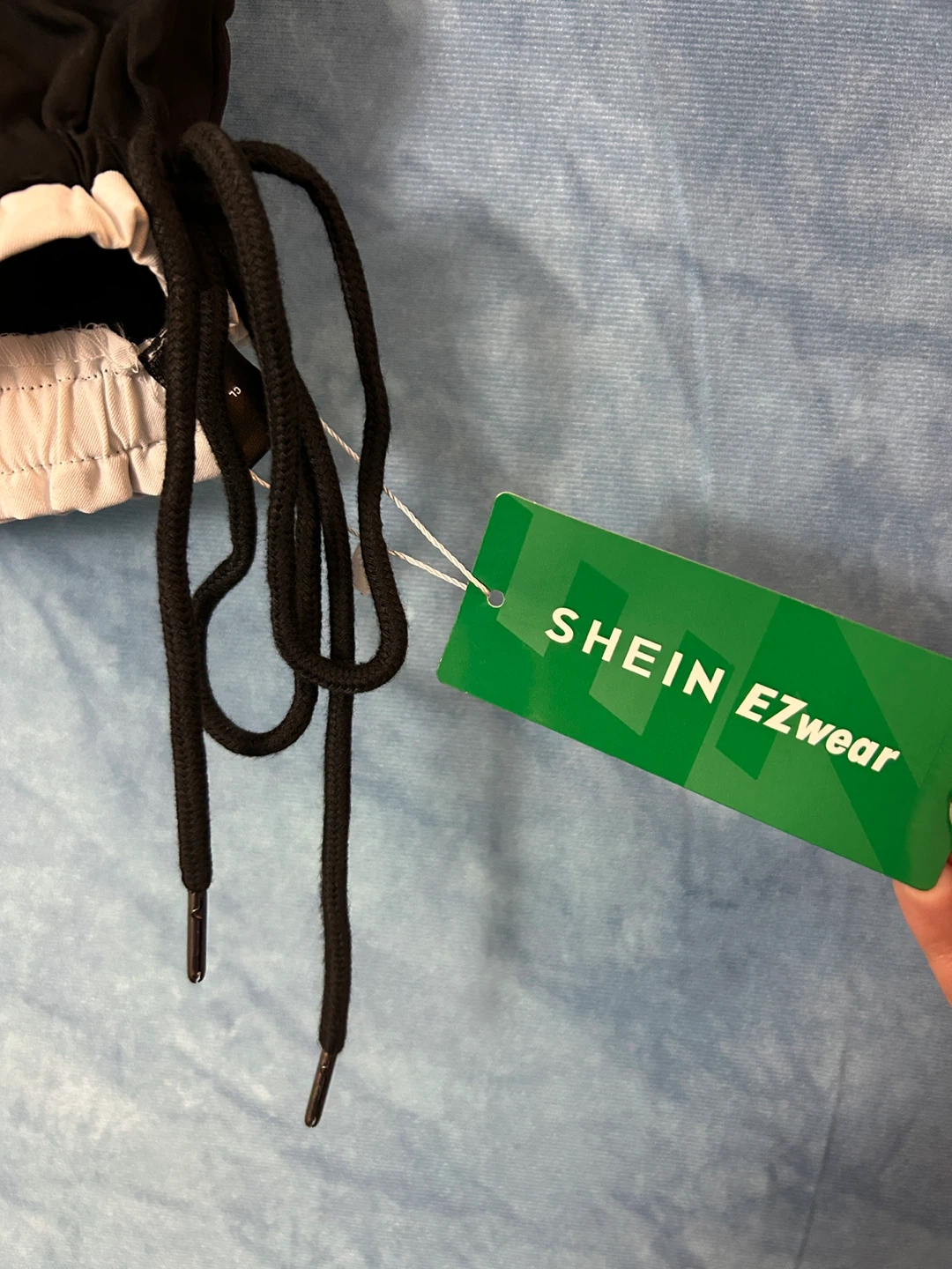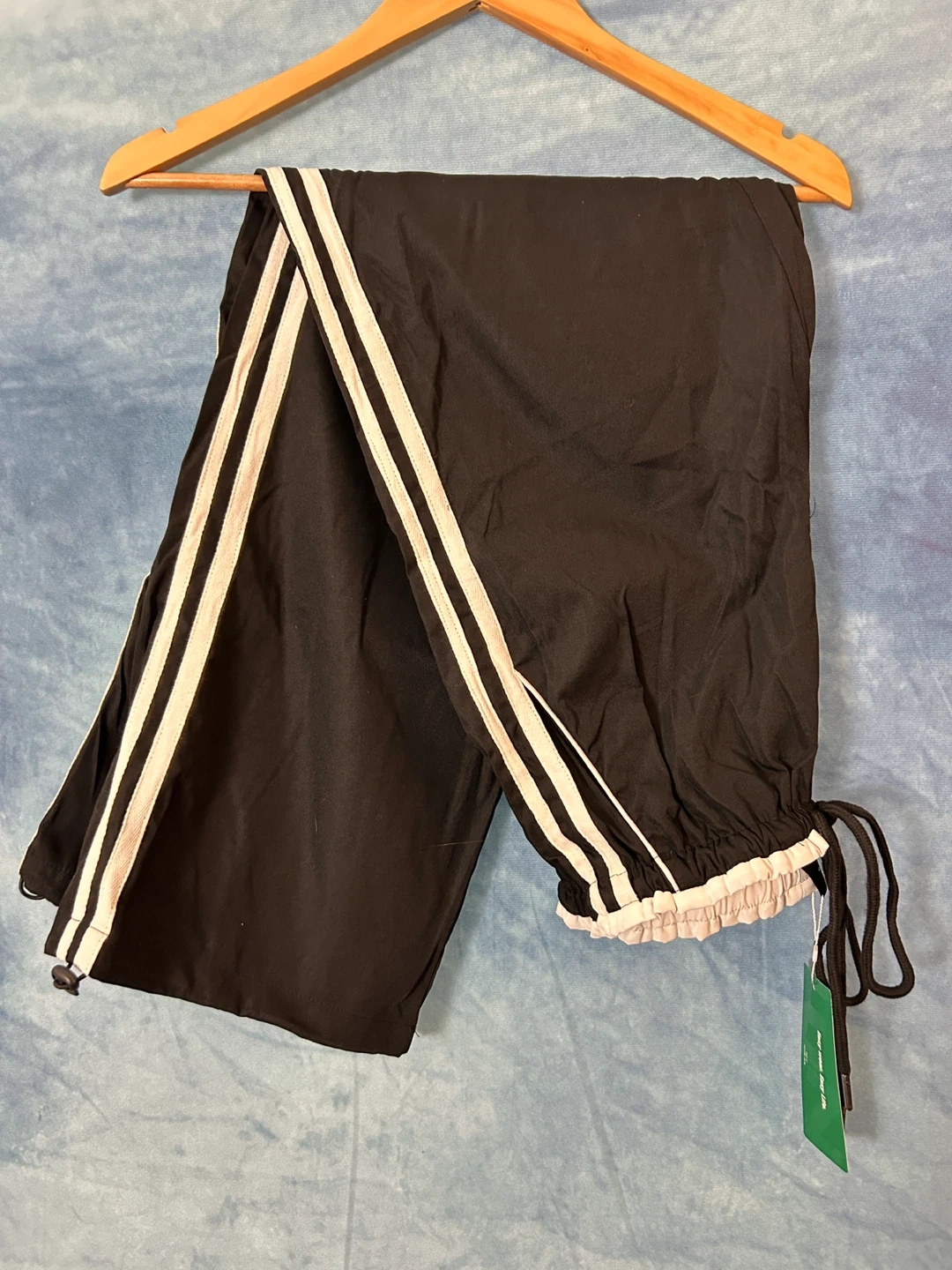 Selling a brand new pair of SHEIN EZwear black track pants in size XS. They feature a sporty design with white stripes down the sides. Perfect for casual wear or workouts!