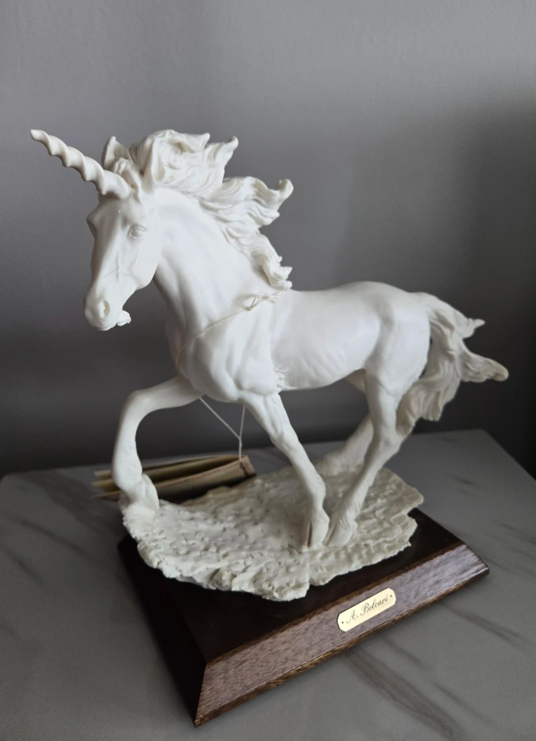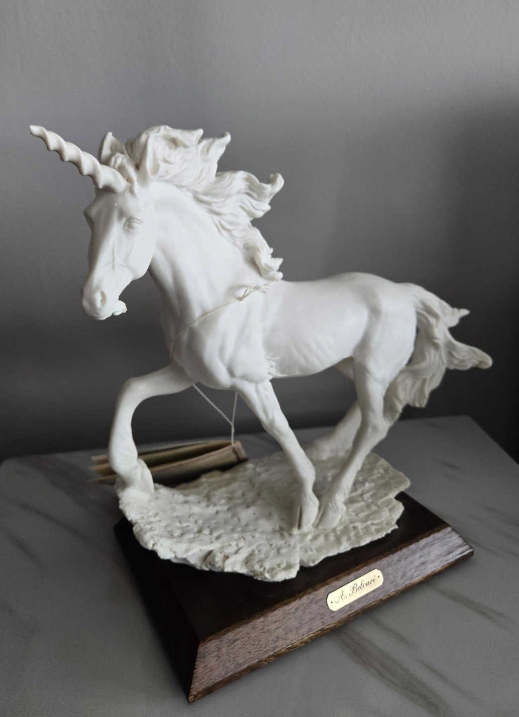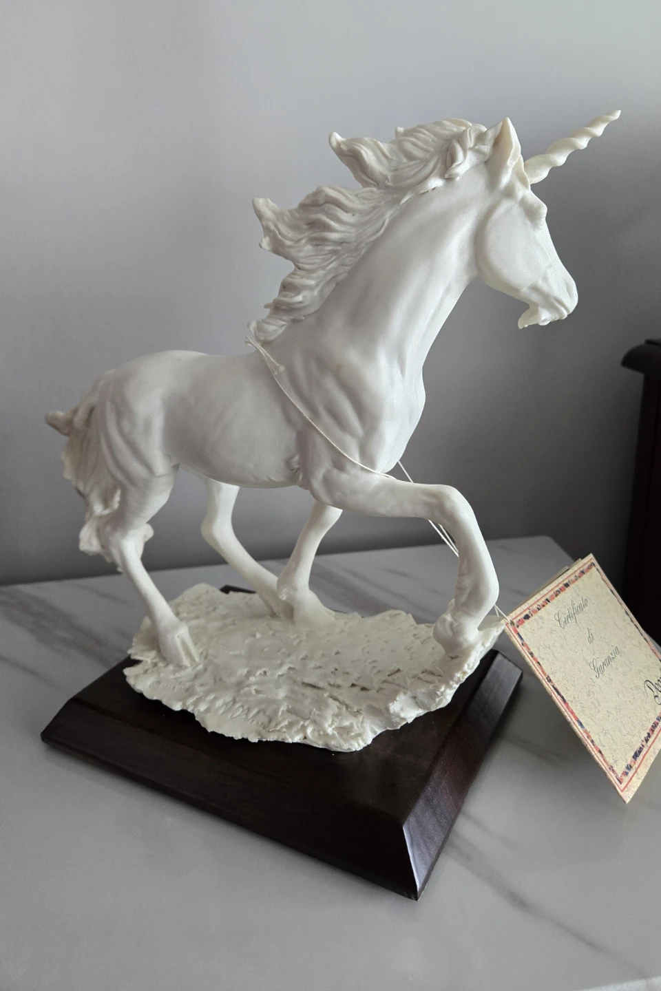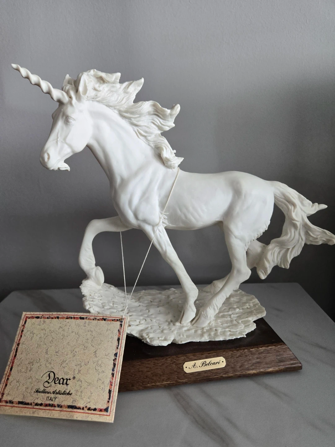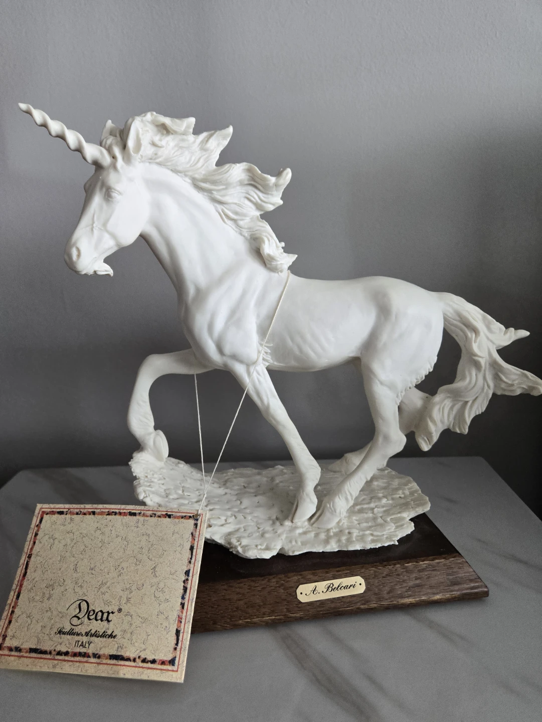 Beautifu vintage unicorn sculpture by A. Belcari. Signed, Enchanting Unicorn Sculpture Dear Series 1988 Italy. 10" Height. Like New Condition. Comes with Certificate of Authenticity. ASKING ONLY $65 FIRM.