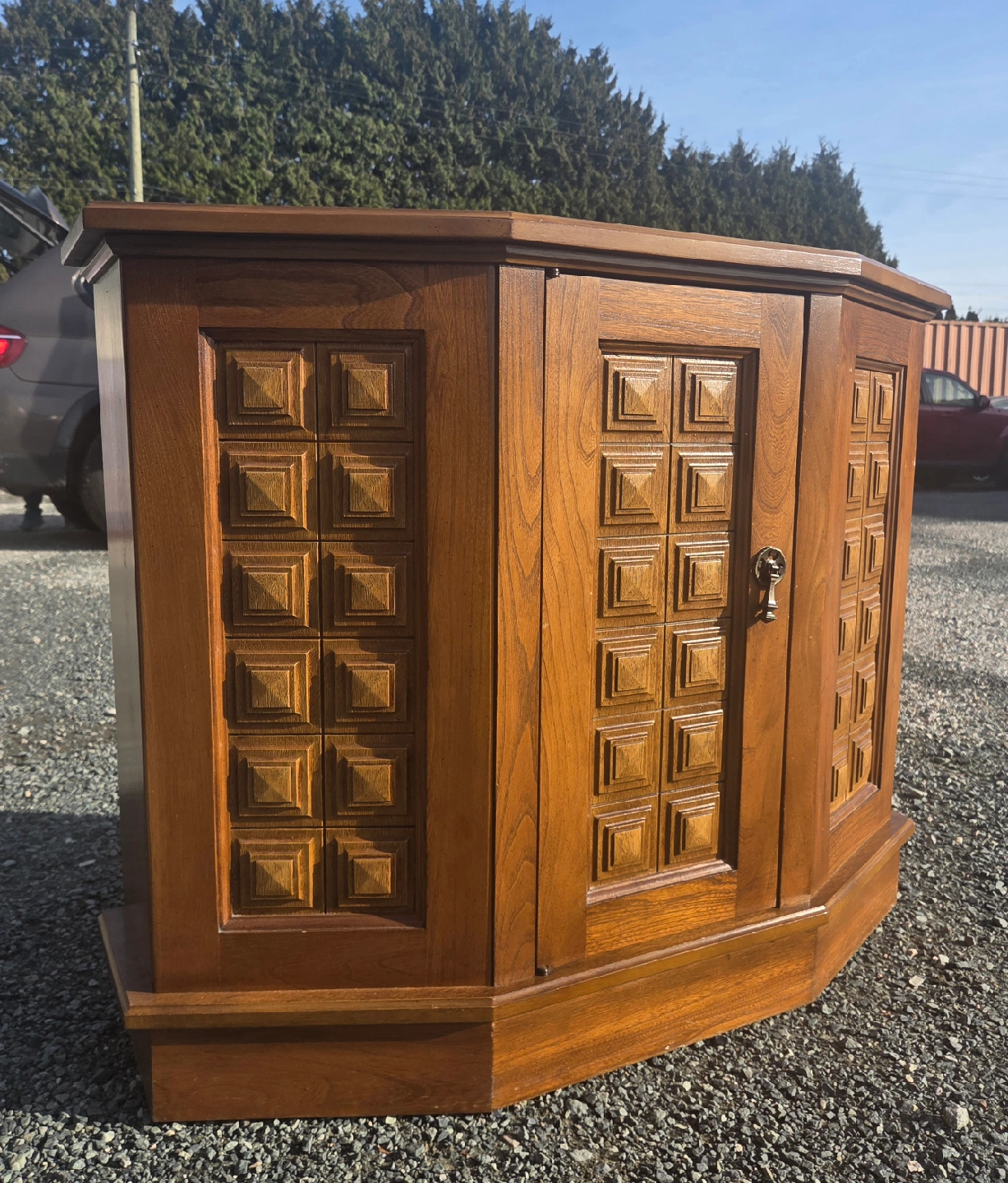 Tags: retro vintage antique 1910s 1920s 1930s 1940s 1950s 1960s 1970s mcm mid century modern furniture brutalist solid wood hallway entryway server buffet credenza sideboard cabinet dining room living room