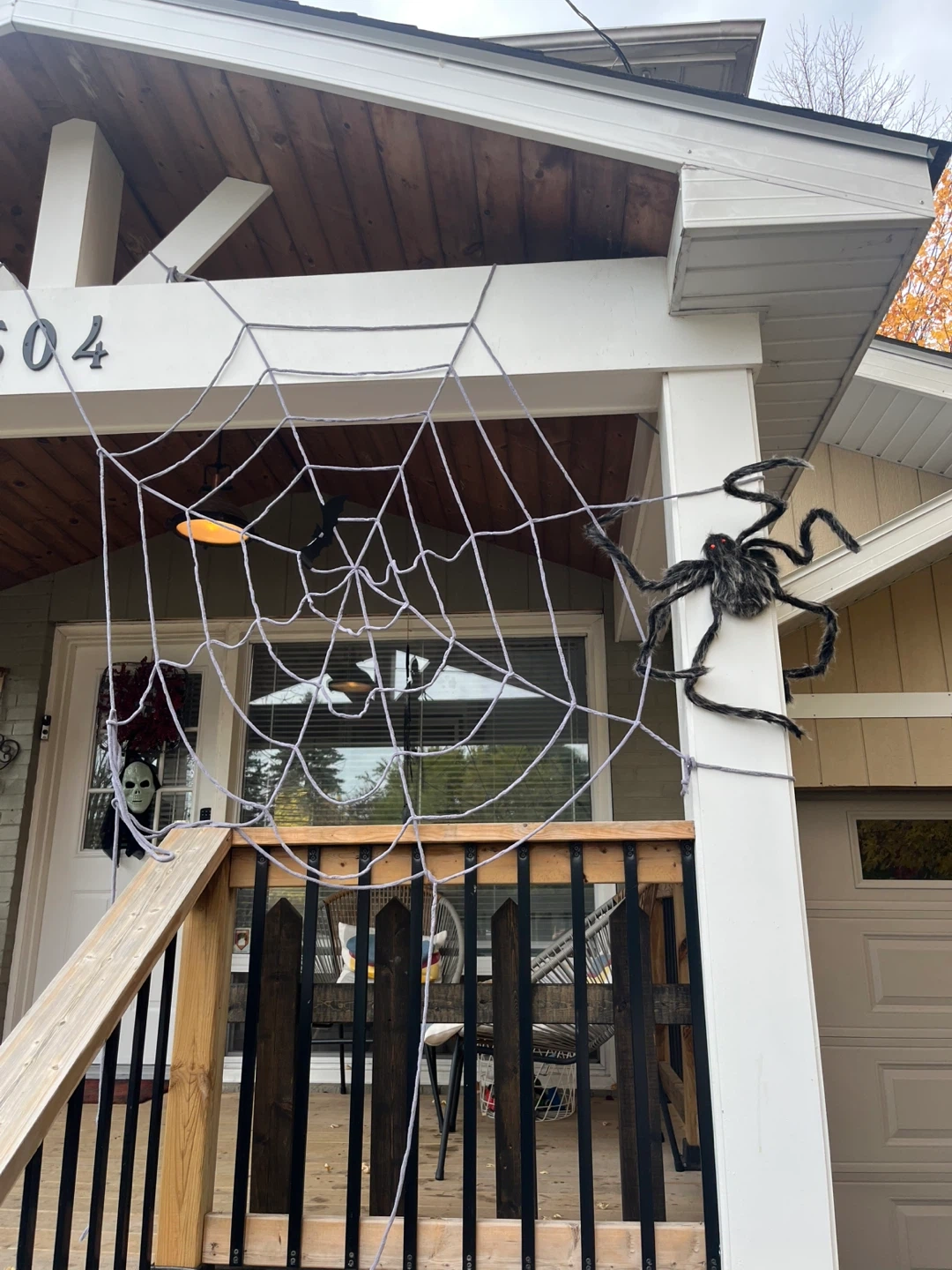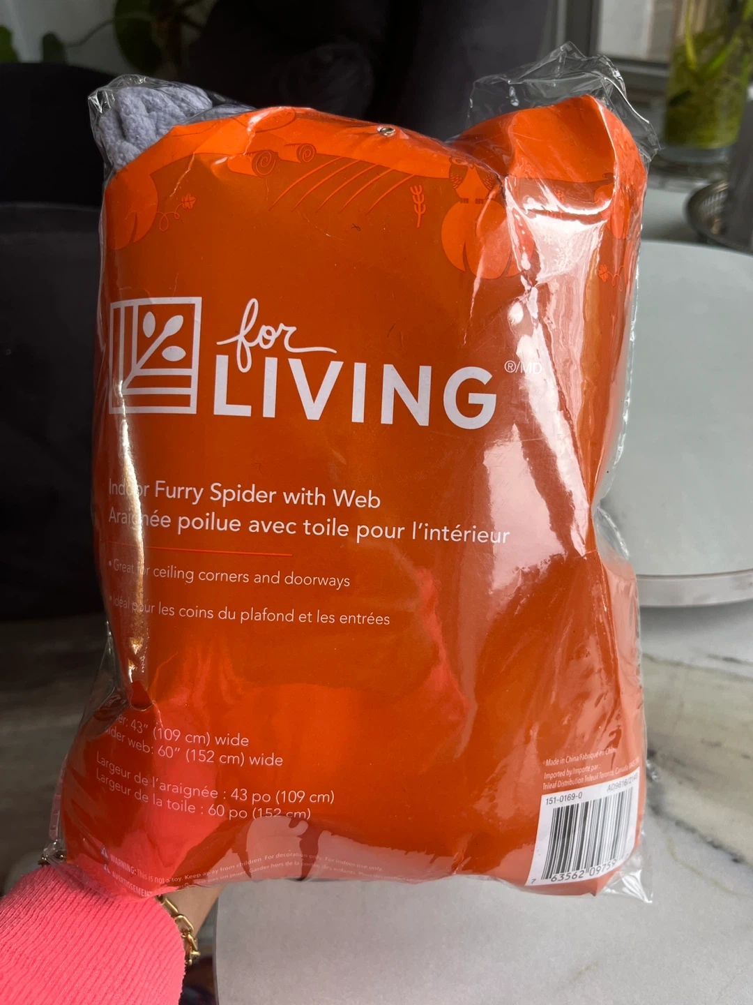 Selling a brand new 'For Living' indoor furry spider with web, still in its original packaging! It's great for adding a spooky touch to ceiling corners and doorways.