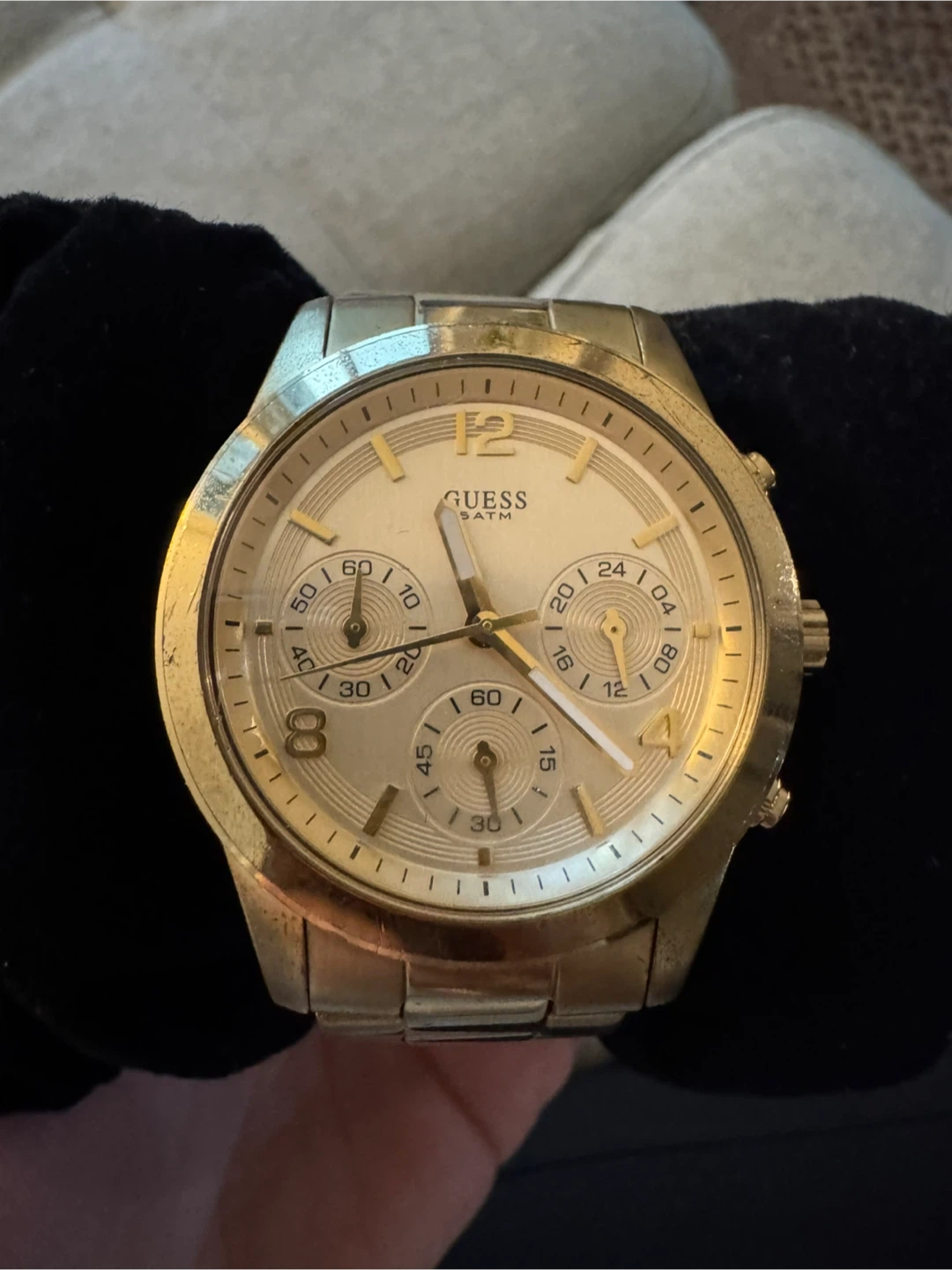 Selling a Guess gold watch. It has a few scratches, but overall good condition. Only selling because been wearing smart watch lately.
