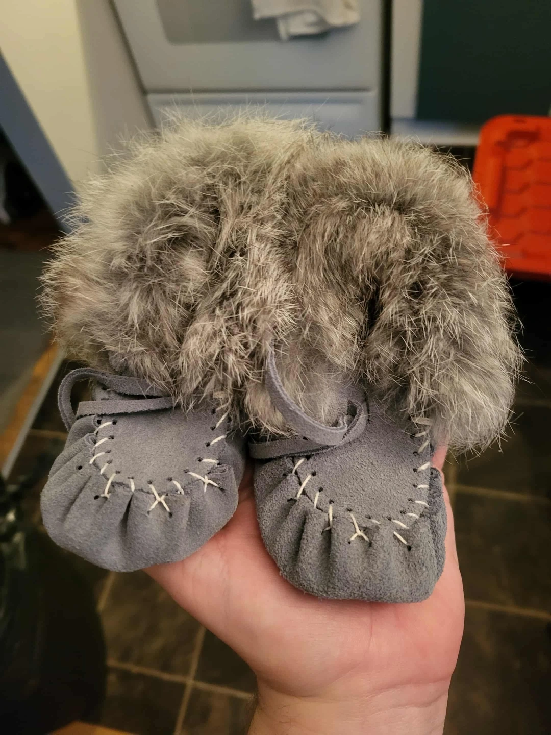 Here are some adorable Laurentian Chief moccasins in a sky blue suede! They are size 6 and come with the original box