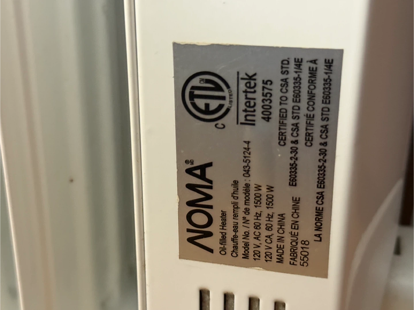 Selling a NOMA oil-filled heater! It's in great shape and ready to keep you warm this winter. It operates at 120V, AC 60 Hz, and 1500W.