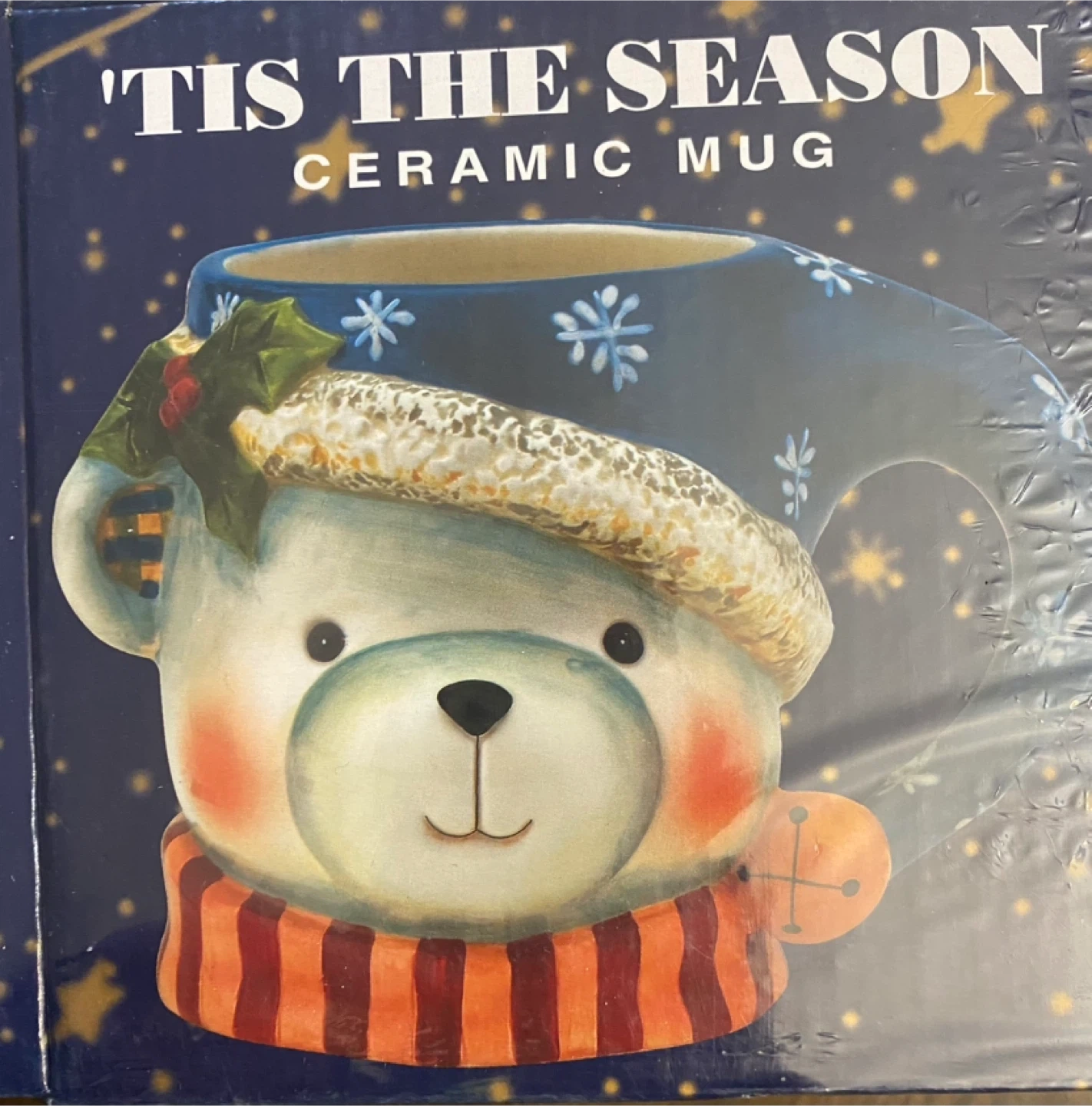 Add some festive cheer to your mornings with this 'Tis The Season ceramic mug, perfect for enjoying your favourite hot beverages during the holiday season. This mug features a charming character design, sturdy construction, and is brand new. The item will come in it's original box.