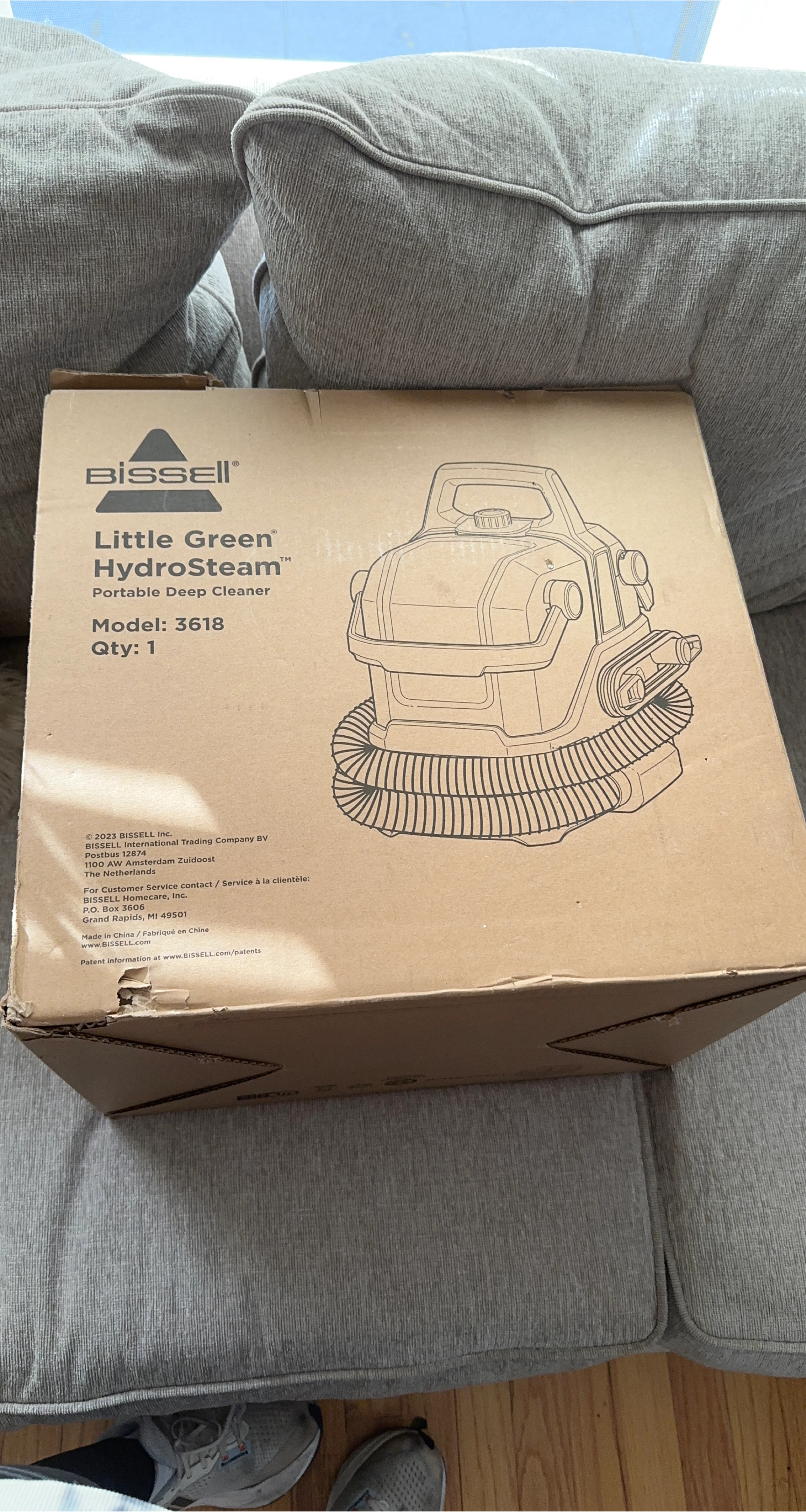 Selling a Bissell Little Green HydroSteam portable deep cleaner, model 3618. It comes with the original box