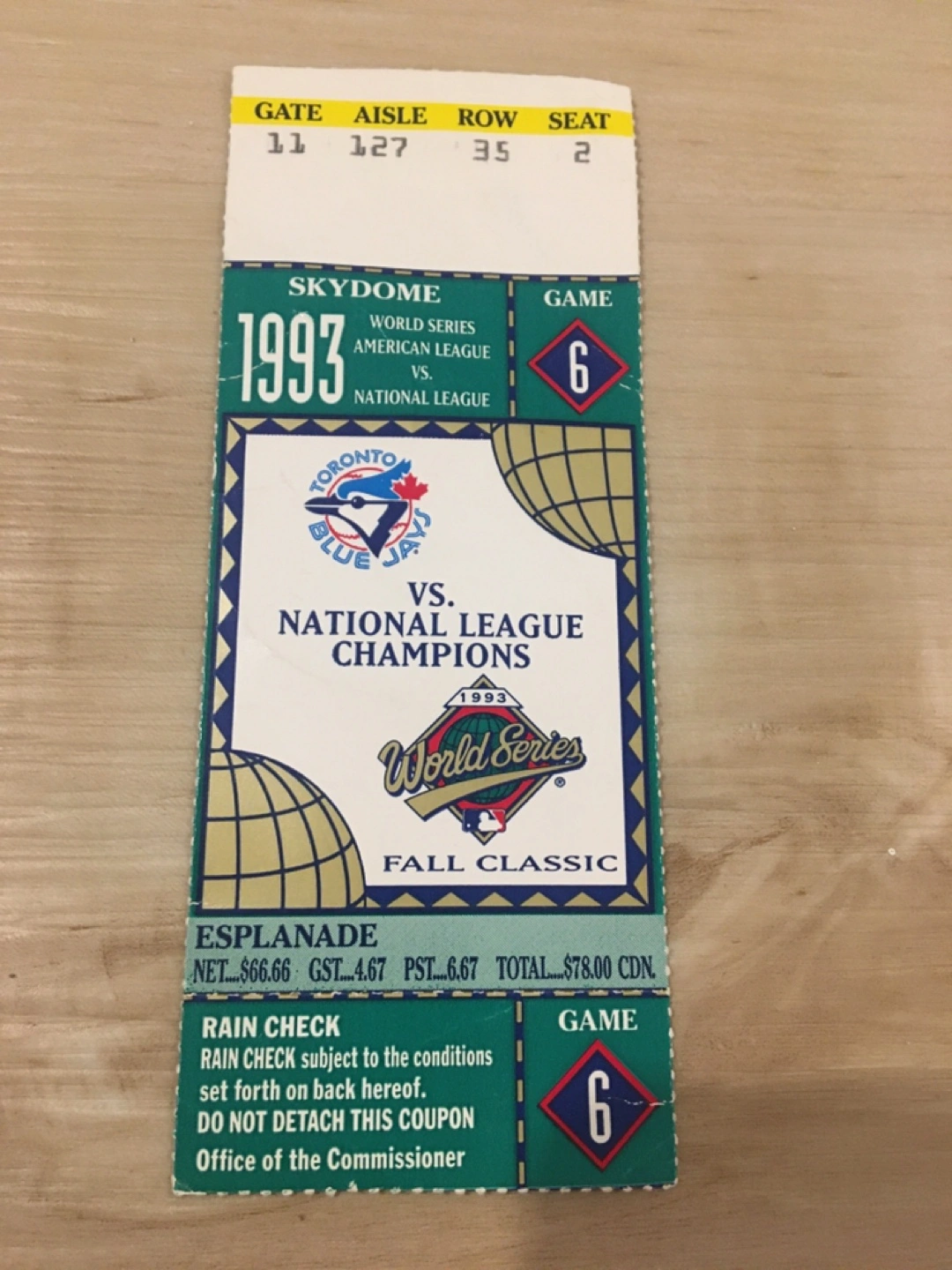 Selling a commemorative ticket from the 1993 World Series, Game 6!!!