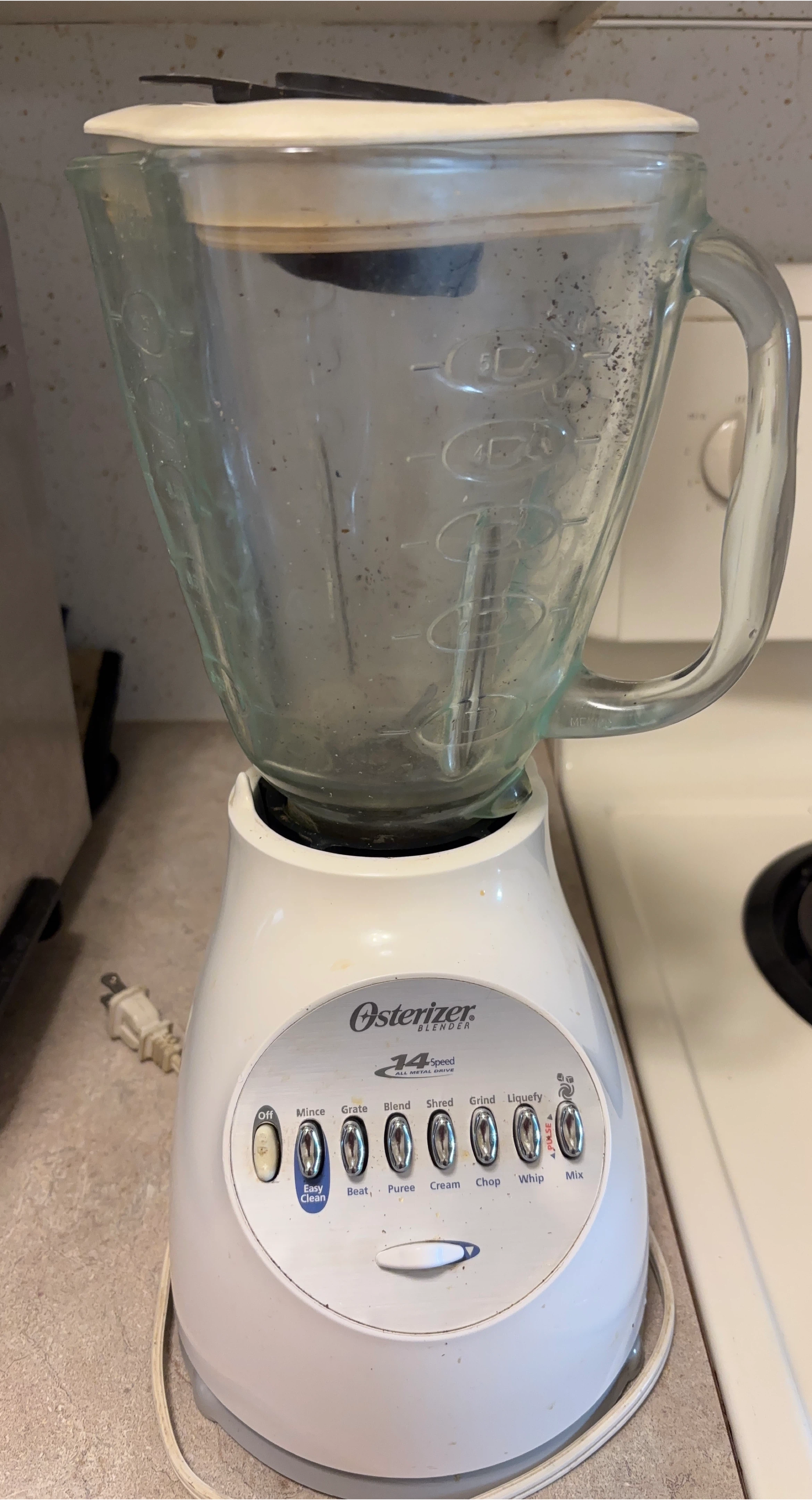Selling an Osterizer 14-speed blender! It has an all-metal drive and a variety of settings including mince, grate, blend, shred, grind, liquefy, beat, puree, cream, chop, whip, and mix. It also has an easy clean function