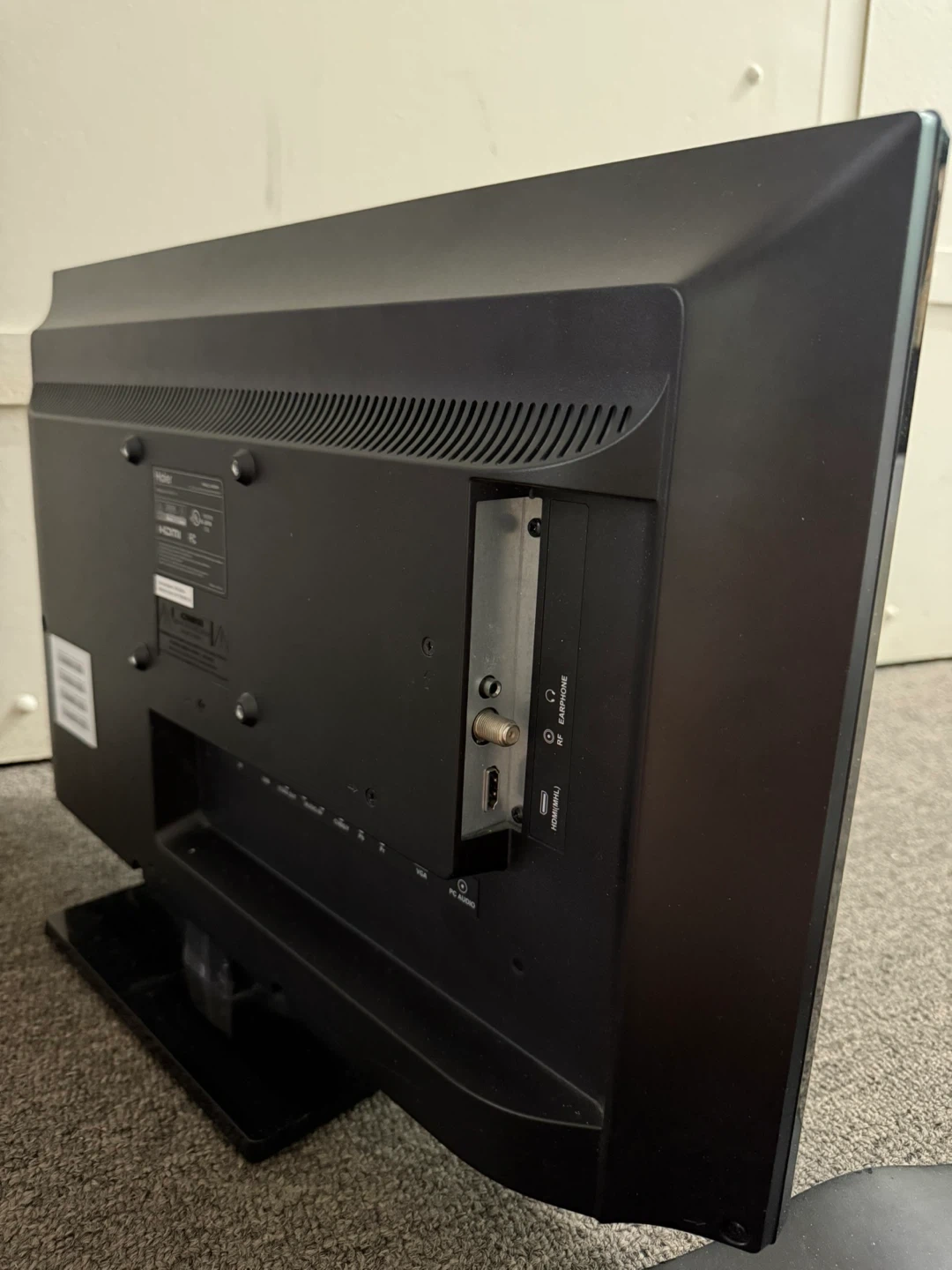 Selling a Haier 24-inch LED TV, model 24E2000. It's a 720p resolution TV, perfect for a smaller space or as a secondary screen. It has HDMI and other ports for connectivity. Great for streaming or gaming!