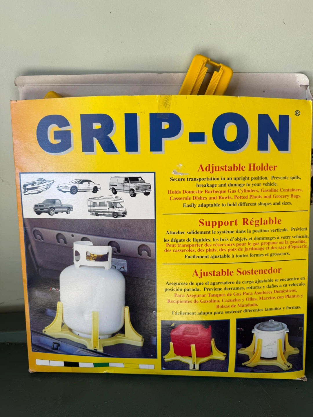 Keep your items secure while you're on the go with this Grip-On Adjustable Holder! It's designed to prevent spills and breakage, whether you're carrying propane tanks, water jugs, or even your favourite potted plants. This holder is easily adjustable to fit different shapes and sizes, making it super versatile for all your transport needs