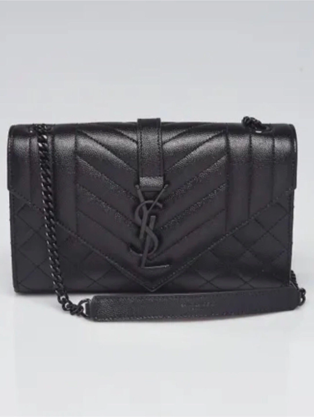 Selling a Saint Laurent quilted bag on chain. It's in excellent condition and perfect for carrying your essentials in style. The black leather gives it a classic and elegant look!