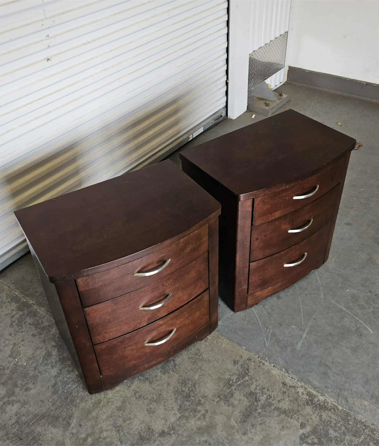 Modern contemporary espresso 3 drawer bedside tables with satin nickel pulls - 28h x 18d x 26w