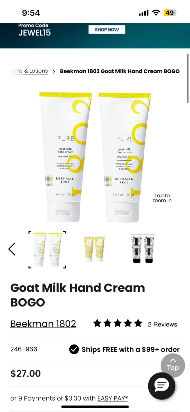 I'm selling two tubes of Beekman 1802 Goat Milk Hand Cream! Each tube contains 2 fl oz | 59 ml of the cream. This hand cream is fragrance-free and made with goat milk, botanical oils, and butters. Originally bought for $27
