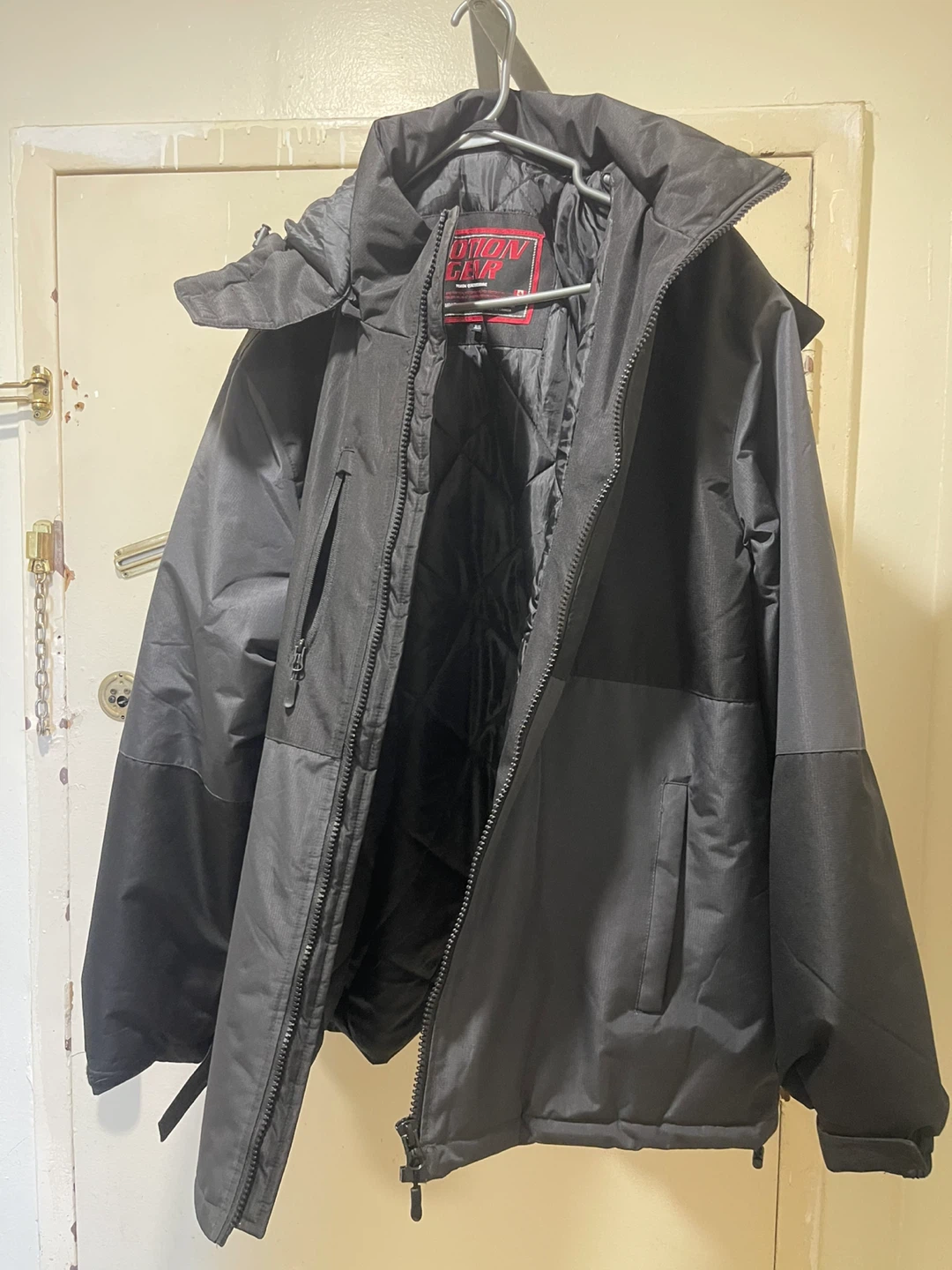 Selling a black winter jacket from Action Gear! It's in great condition and ready to keep you warm this winter. The jacket features a hood and a full zipper.