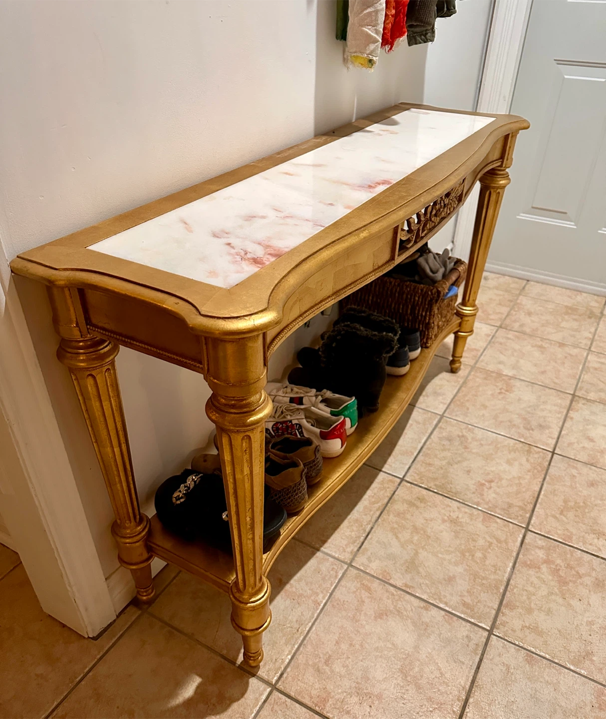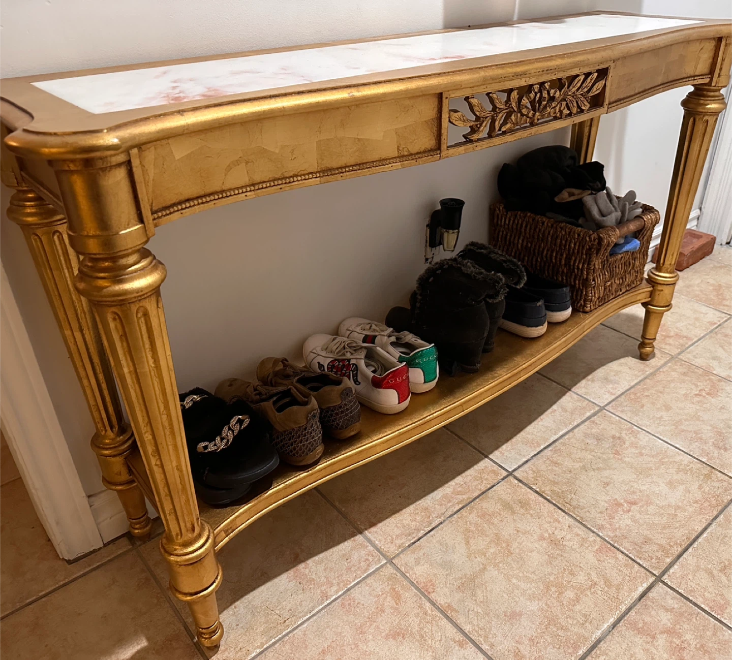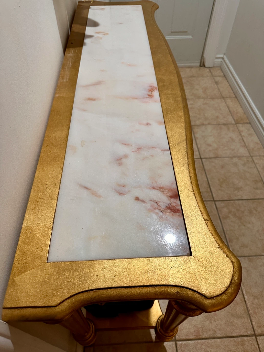 🥕Gilded Portuguese Marble Top Sofa Entry Table by Weiman