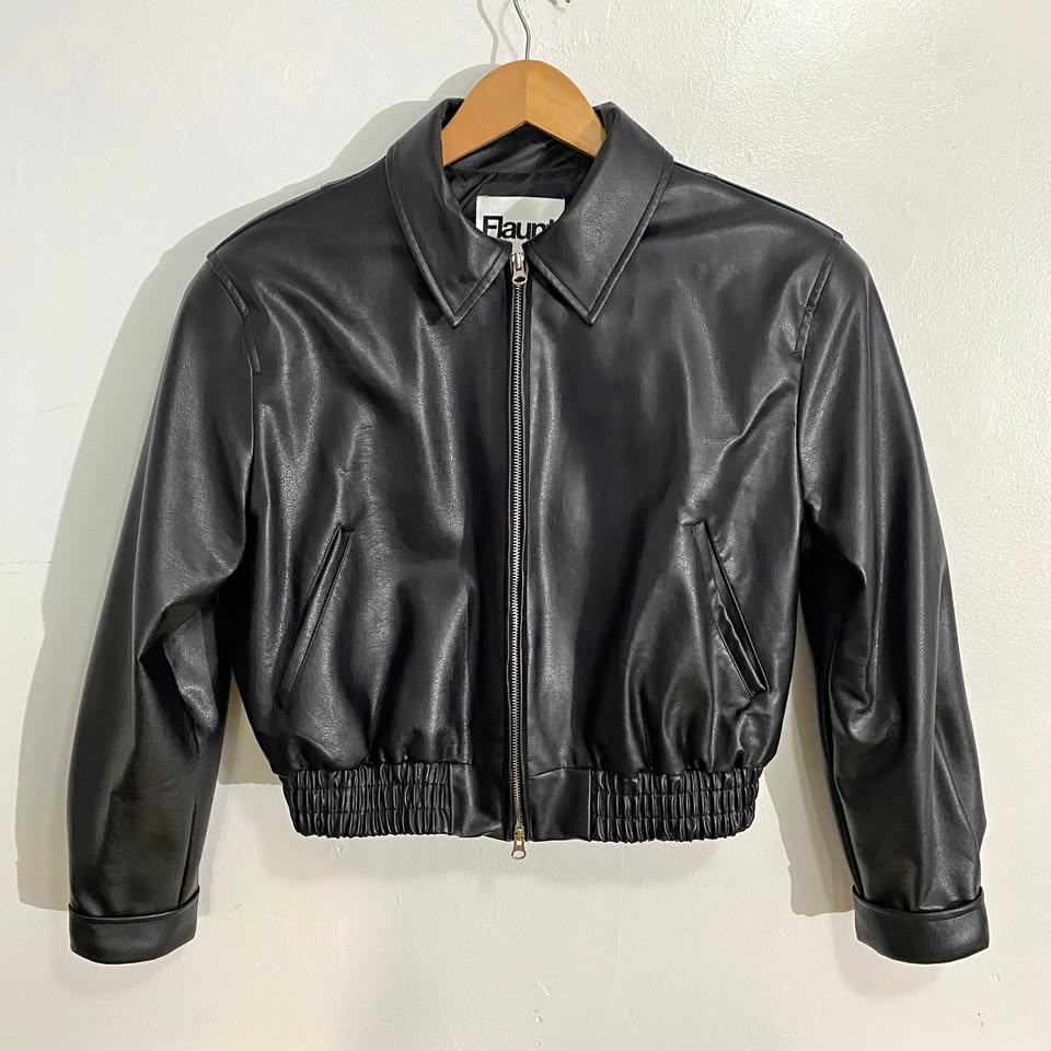 Vegan Leather Cropped Moto jacket by Flaunt Seoul