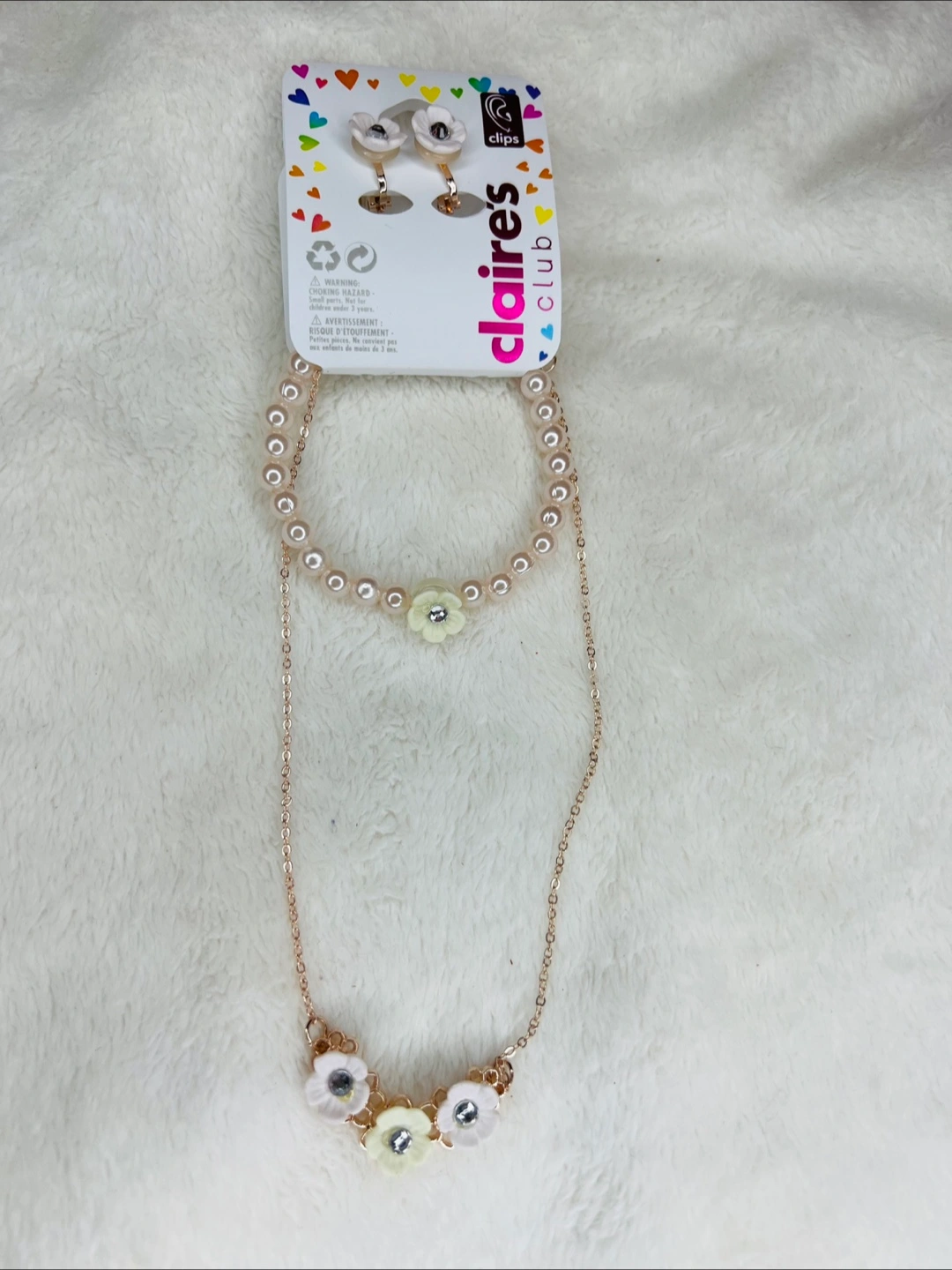 Claire's Club Flower Necklace & Clip on Earring Set