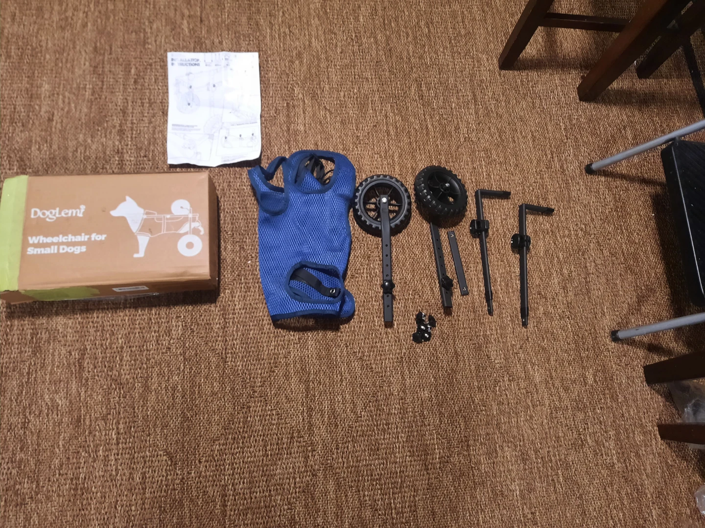 Selling a brand new DogLemi wheelchair for small dogs! This wheelchair is designed to help disabled or injured pets with mobility. It's fully adjustable in length, width, and height to ensure a comfortable fit. Includes the original box and all components, along with the instruction manual