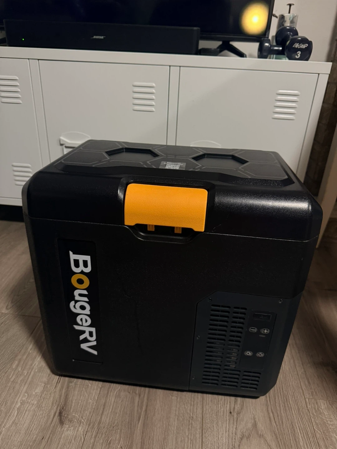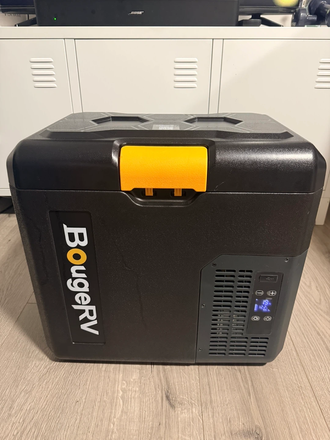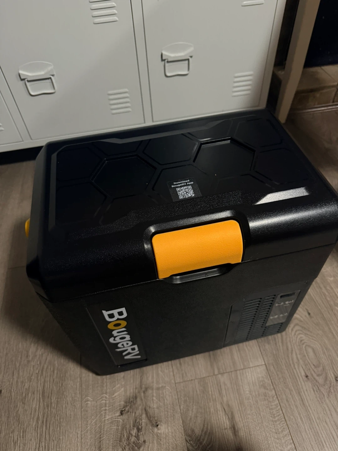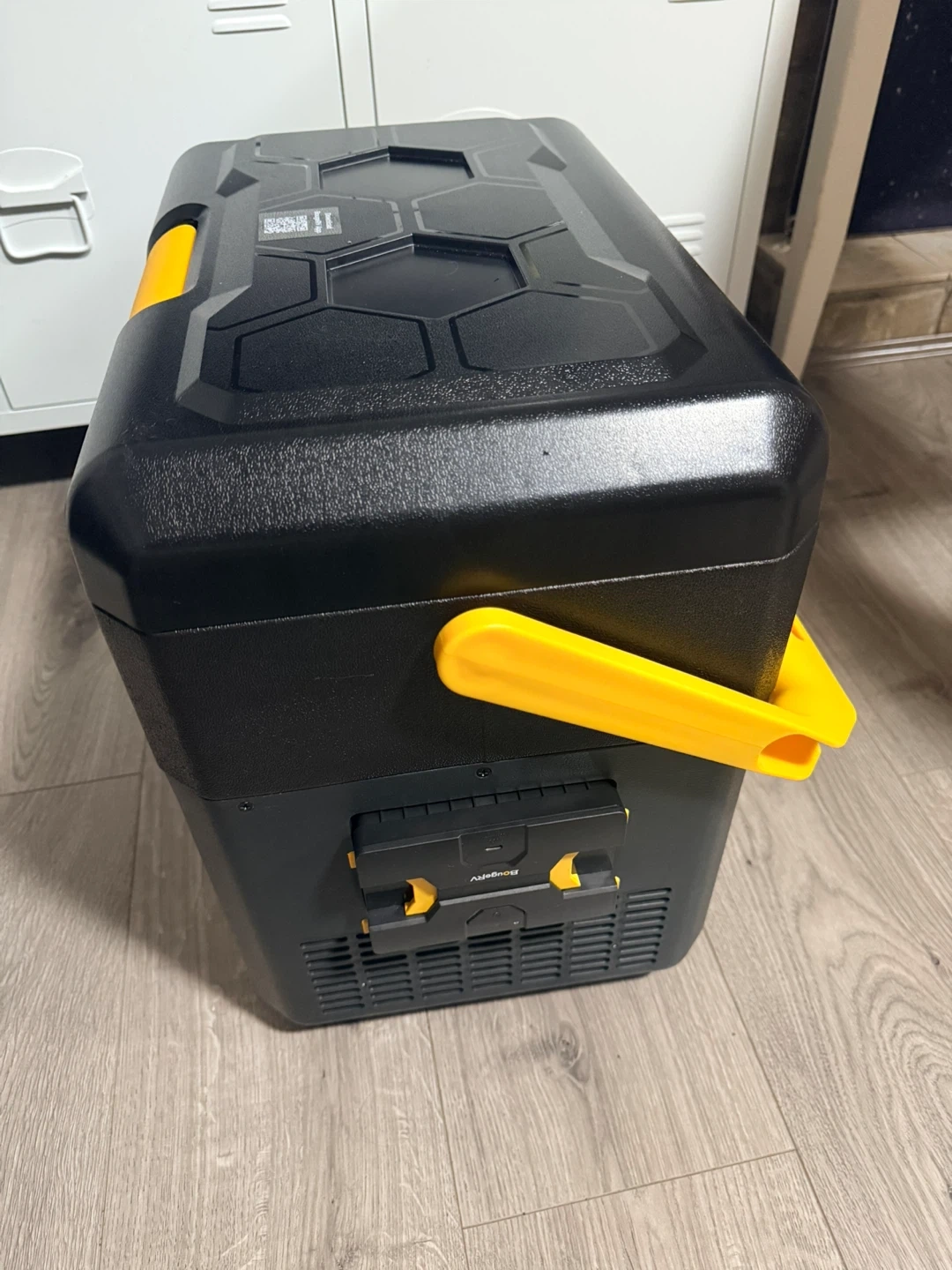 Selling a BougeRV portable car fridge freezer! It's in great shape and ready to keep your food and drinks cold on the go. Perfect for camping, road trips, or picnics. The black and yellow design looks great too!
