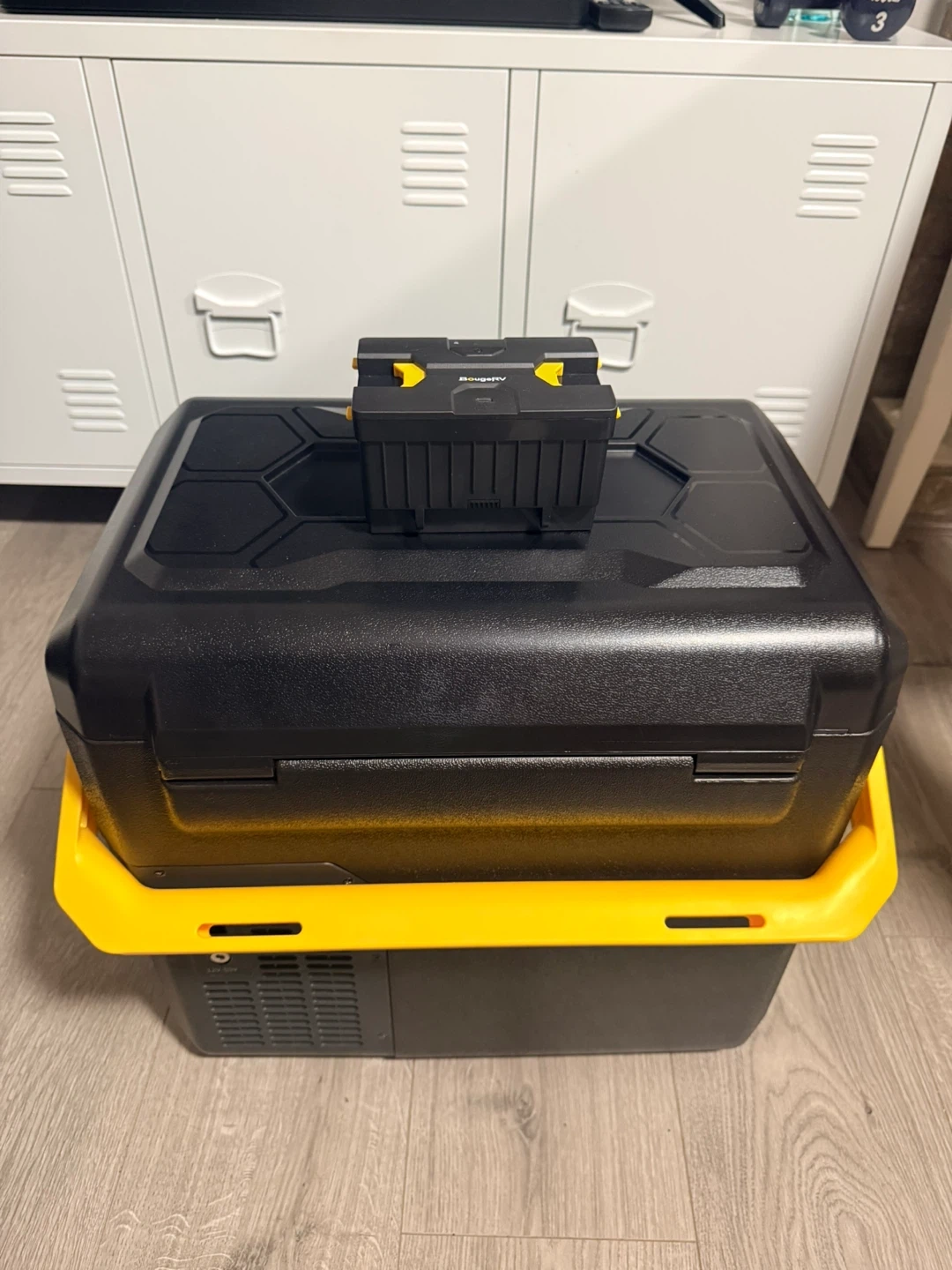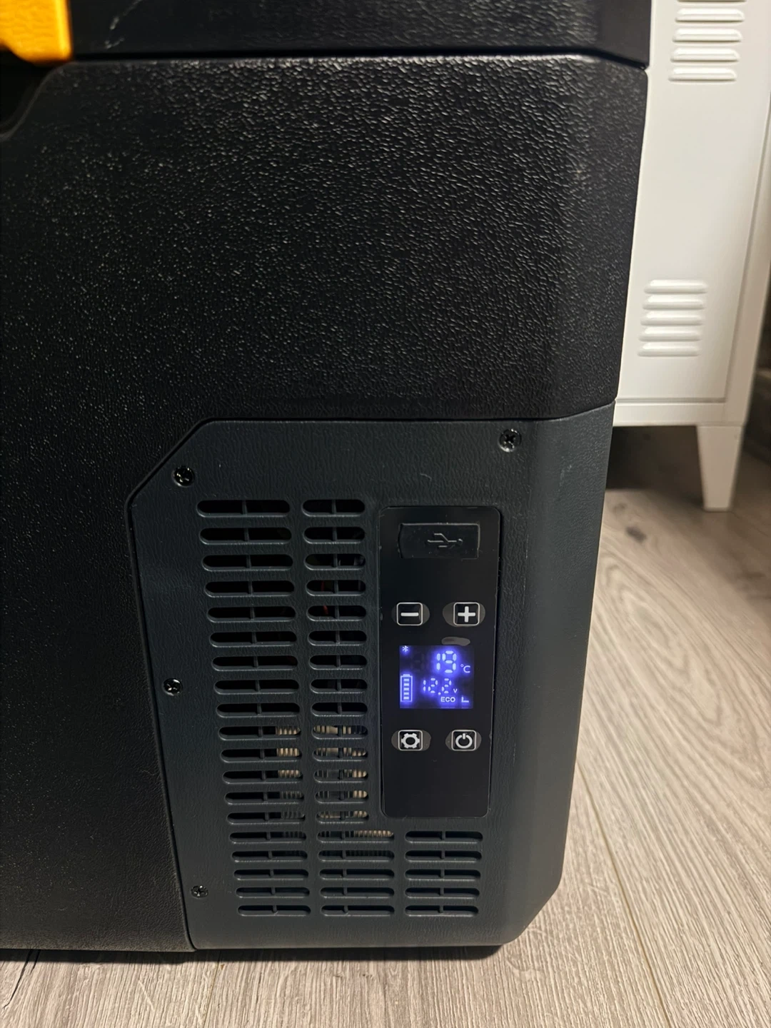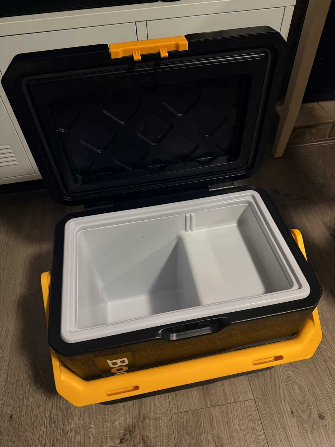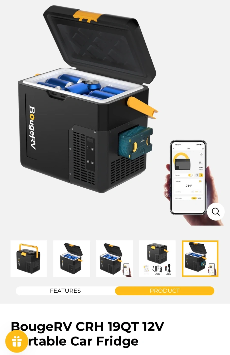 Selling a BougeRV portable car fridge freezer! It's in great shape and ready to keep your food and drinks cold on the go. Perfect for camping, road trips, or picnics. The black and yellow design looks great too!
