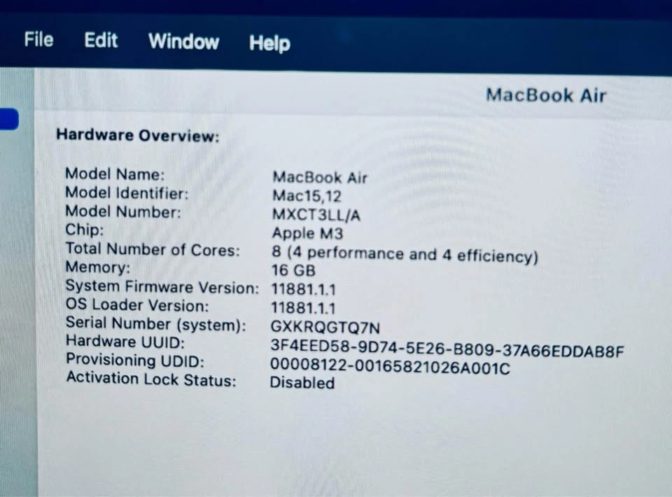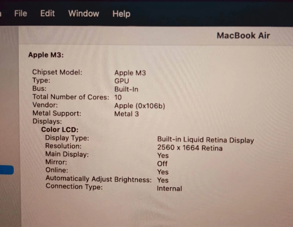 Hi, I am selling Apple Macbook Air 13”, 2024, Retina Display. I factory reset it so it’s like new and all accounts and data is removed. It is fully functional. You can come and see it before purchasing no isssues. Good Condition
